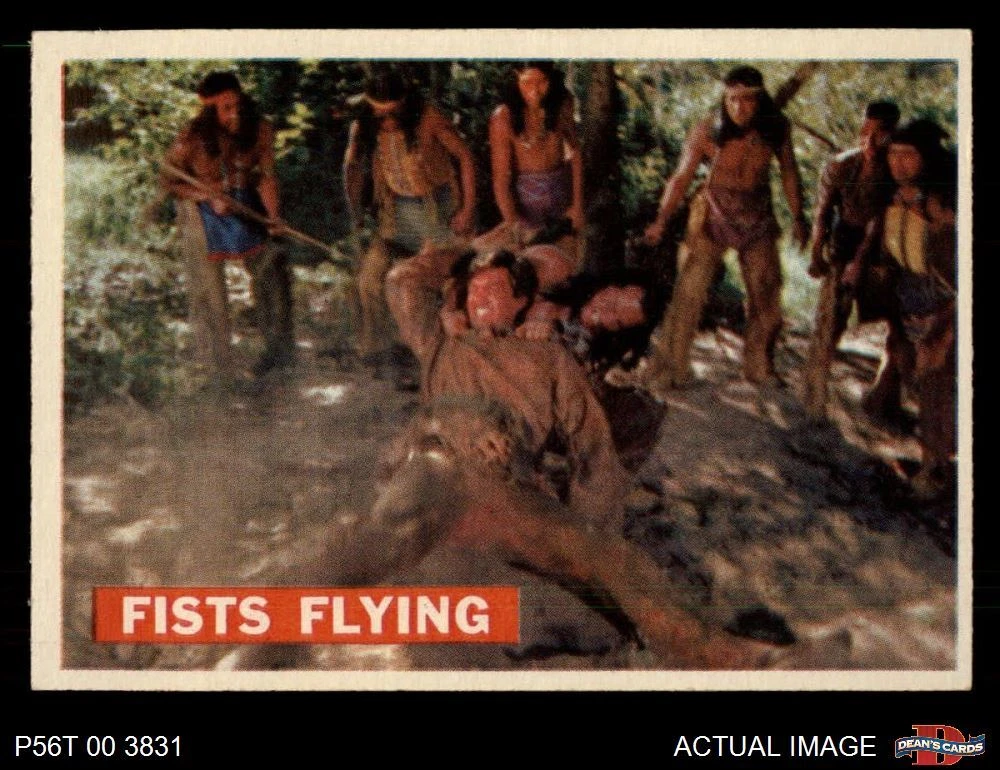 1956 Topps Davy Crockett Orange Back #31 Fists Flying 5 - EX If the scan in the listing says ACTUAL IMAGE, you will receive the card pictured. For cards issued after 1983, we will often use representative images and you will not receive the exact card pictured. Shipping Policy You only pay shipping on the first item. If you order multiple items on the same order, you will only be charged once for shipping. We do not combine shipping on multiple orders. To avoid multiple shipping charges we recommend using eBay's "Add to Cart" feature to check out multiple items in one transaction, or please request and allow for us to send an invoice to reflect the combined shipping charges. Canadian customers - We send all of our Canadian/International packages with tracking and cannot make any exceptions to this policy. Negotiating Prices All prices are final and we do not negotiate. This policy is to ensure that everyone knows that they are getting our best possible price. So please do not ask us to negotiate on price. Return Policy Dean's Cards has a 100% Money Back Satisfaction Guarantee on all purchases, as long as the product is returned within 30 days of receiving the product. Card Grading Each card is first reviewed by a member of our team, in order to detect any flaws that may not be visible on a scan, such as wrinkles, creases, print spots, or light stains. The vast majority of our vintage cards are professionally graded by the Dean's Cards Grading Software and include a 100% satisfaction guarantee. Our grading is on par with PSA standards when it comes to corners, centering and flaws - and tends to grade a bit tougher than PSA, on cards with a tilted image or rough edges. This grading software was developed to provide far better grading and consistency than can be achieved using the human eye. Determining the card's grade The sharpness of the corners and the degree to which a card was cut off-center determines the maximum possible grade that the card can receive. The card's grade is further reduced by any flaws or blemishes that it may have. Each card is evaluated on the following characteristics and assigned a score. Corners - Each corner of a card is individually analyzed, and then assigned a score on how square, sharp, and flawless it appears. Centering - The borders are measured, at multiple points along the edge, to determine the horizontal and vertical centering and tilt. Defects - The card is examined for imperfections, such as: size, print flaws, dings, stains, creases, or other wear which could lower its grade. Bonus for Perfect Centering - A vintage card, with near perfect centering, is given a one-half grade bonus. So when you buy one of our cards with a half-grade (e.g. 3.5 or 6.5) it will appear perfectly centered, both vertically and horizontally. Grading Criteria Worst Corner - A card can grade only as high as the worst corner will allow. Average Corner Tilt - The difference in width of a card border near the top, compared to the bottom. OCT - The sum of how far a card is Off-Center, plus its Tilt. Minimum Centering Requirements Eye Appeal - The combination of a card's centering, corners and tilt. Well-Centered - Cards that appear perfectly centered receive a bonus of one-half grade. Flaws, defects and other imperfections - can lower a card's grade. Card Backs - the above criteria is also considered, for the back of the cards, but does not inflict as severe of a penalty to its grade. Packaging Once scanned, the cards are placed in "soft" sleeves, which have an open top for easy removal. The Dean's Cards label is placed on the top back of the card sleeve. Every card you buy features a QR Code that you can scan to see your ACTUAL CARD and its grading statistics. Please note that when images are enlarged there may be instances of vertical lines running through the scans. This was caused by a "dust speck" on the scanner and can be verified by the vertical lines running into the black margins on the top and bottom of the image. About Dean and Dean's Cards Dean's Cards Makes Card Collecting - Fast, Easy And Fun. Dean's Cards was founded in 2002 and has become the leading online seller of vintage sports cards and non-sports cards. Our inventory has grown to more than a million vintage cards and we have a staff of 15-20 employees and a 8500 sq. ft. office space in Cincinnati, Ohio.