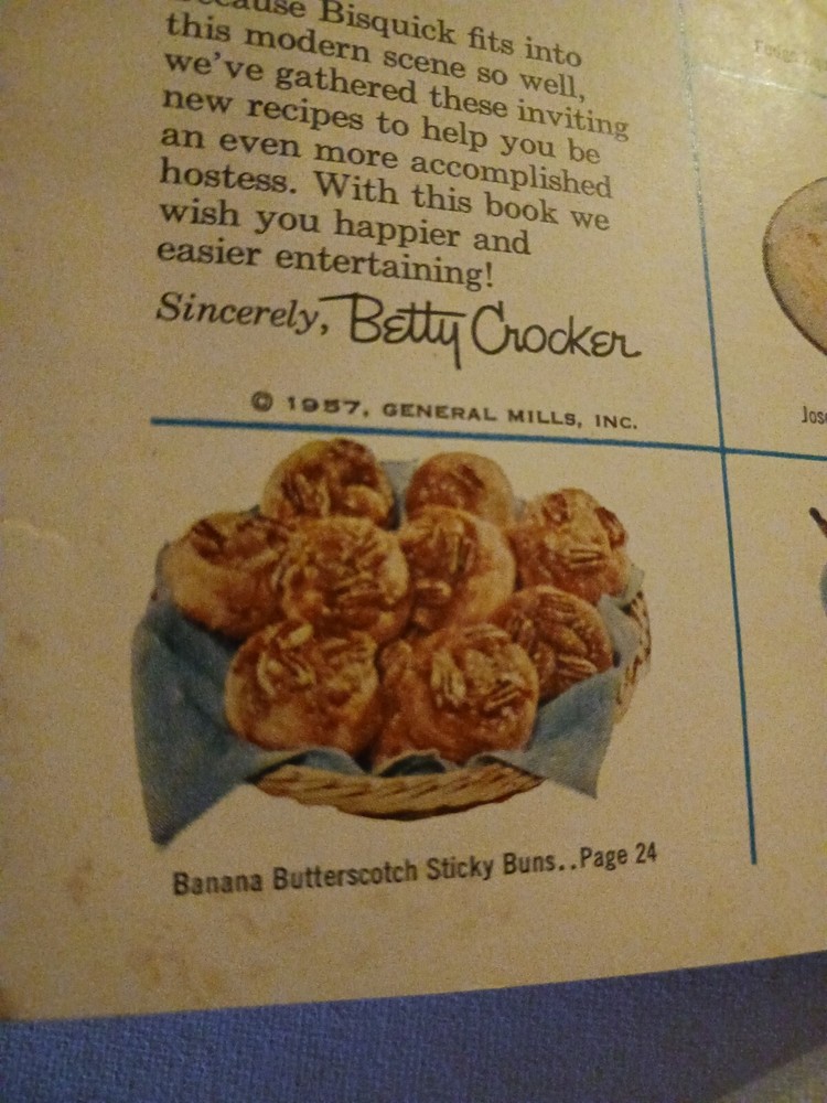 This vintage cookbook from 1957 features Betty Crocker's Bisquick Party Book, filled with recipes and party ideas. The blue cover showcases an image of a delicious cake, and inside you'll find a collection of original recipes and baking tips. The book is in its original condition and comes from the United States. It is a great addition to any collection of vintage cookbooks or advertising memorabilia. Whether you're a fan of Betty Crocker or simply love baking, this book is a must-have. 67 year old book may show signs of minor wear