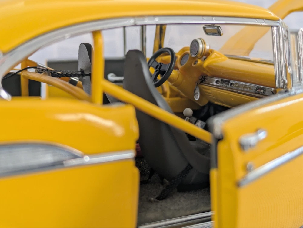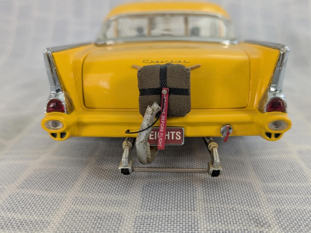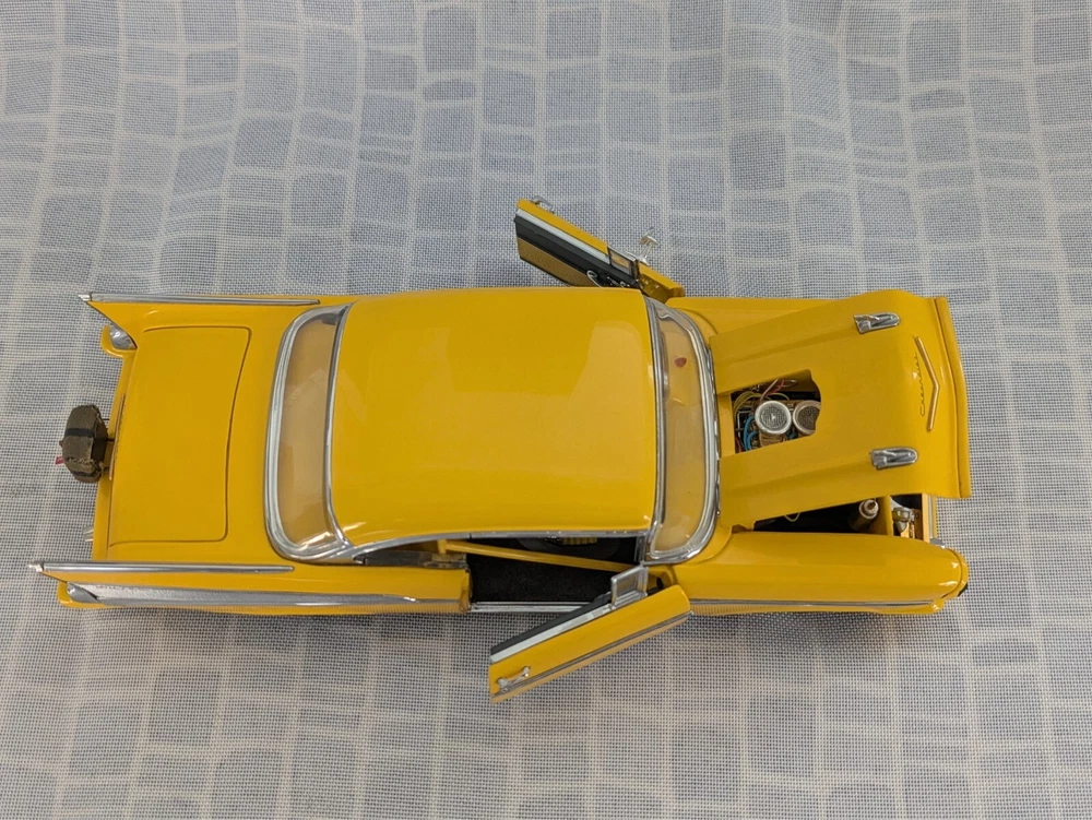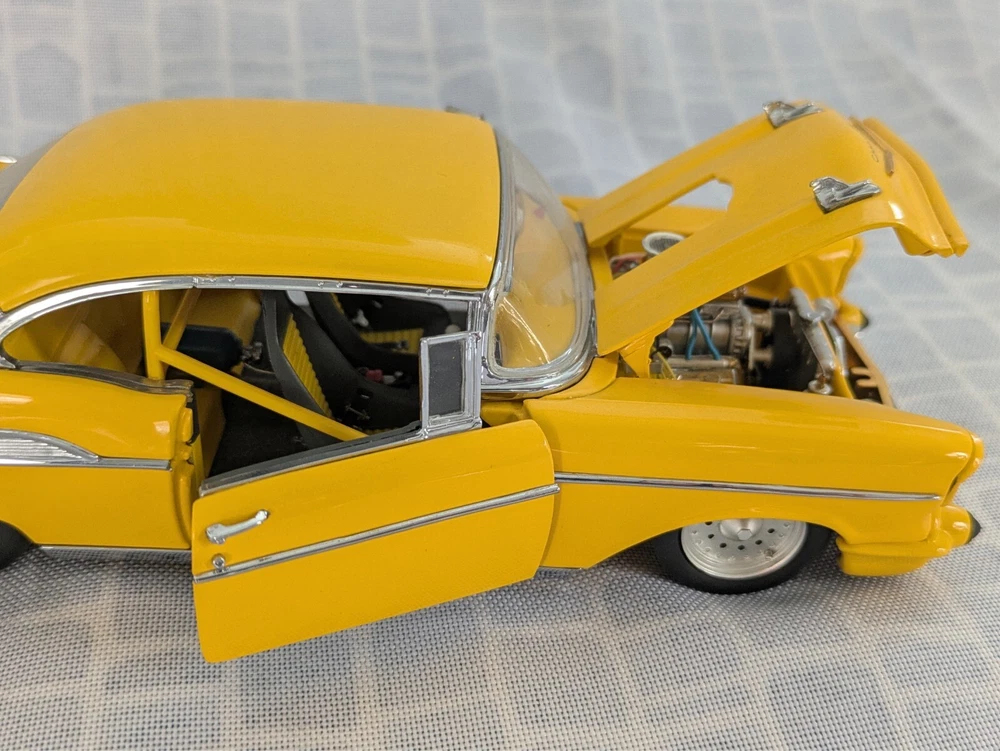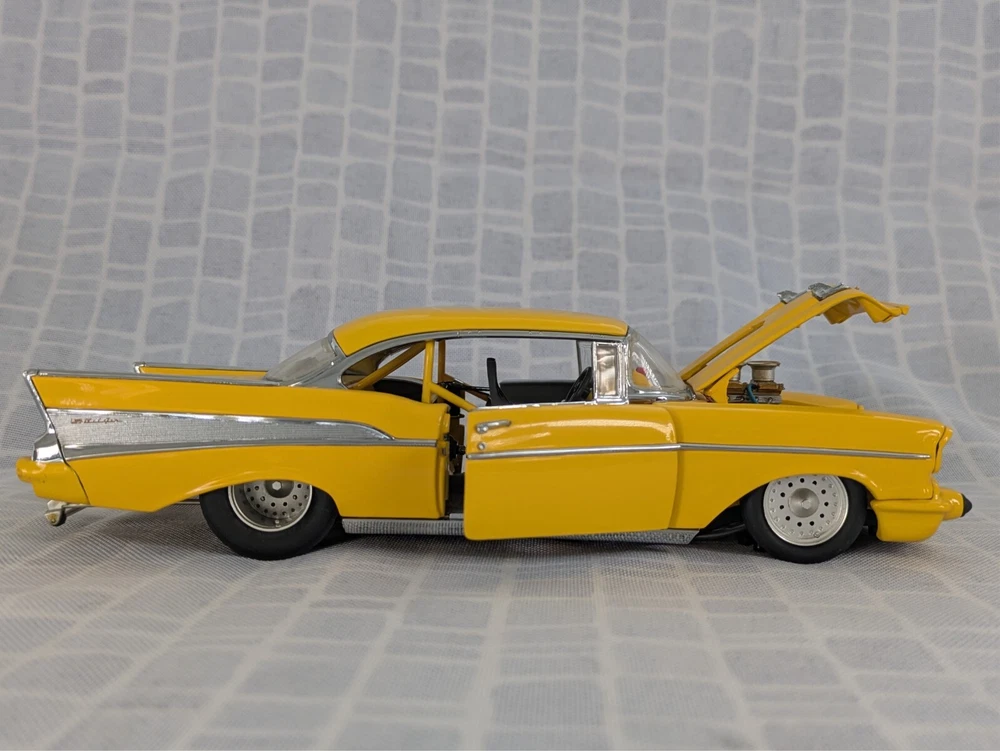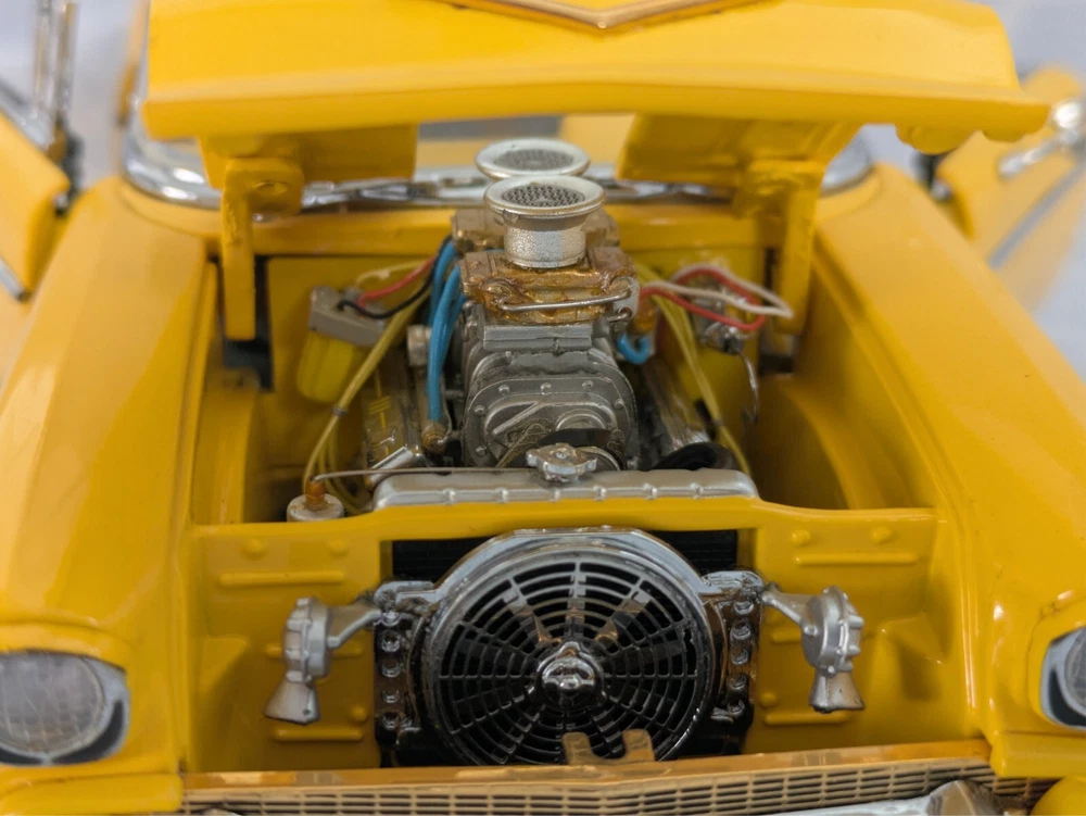 This is from my late father in law's die cast collection. It is a die cast model of a 1957 Chevy Pro Street Hardtop car. It is missing the air cleaner cover that attaches to the hood. It is a 1:24 scale model made with the detail and quality that the Danbury Mint is known for. This model has lived in the box since purchase in a smoke free home. Thanks for looking.
