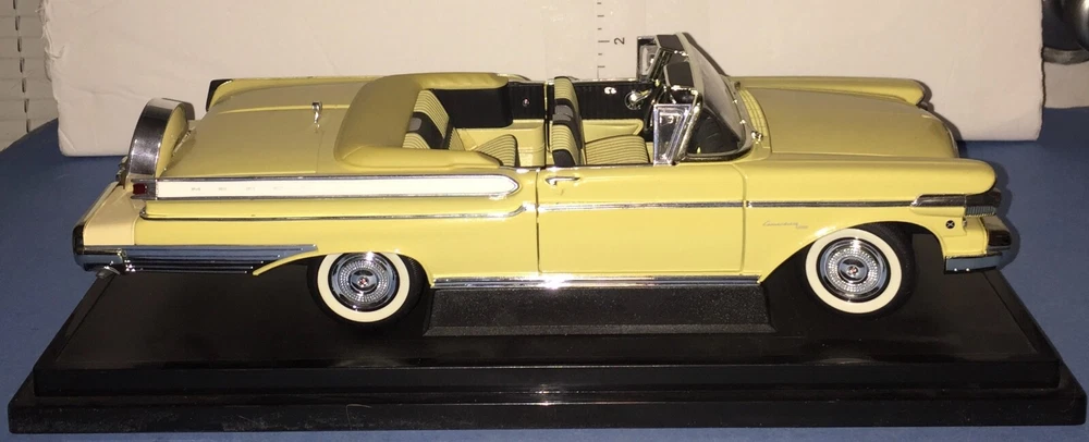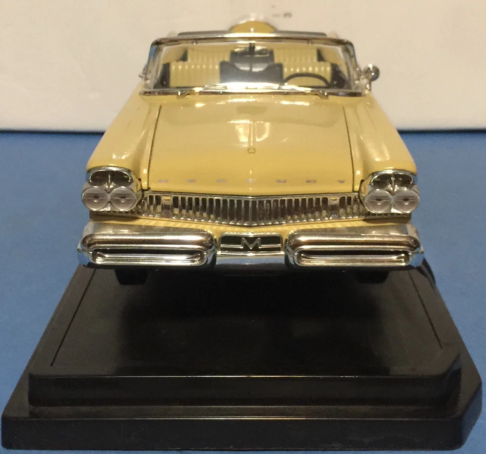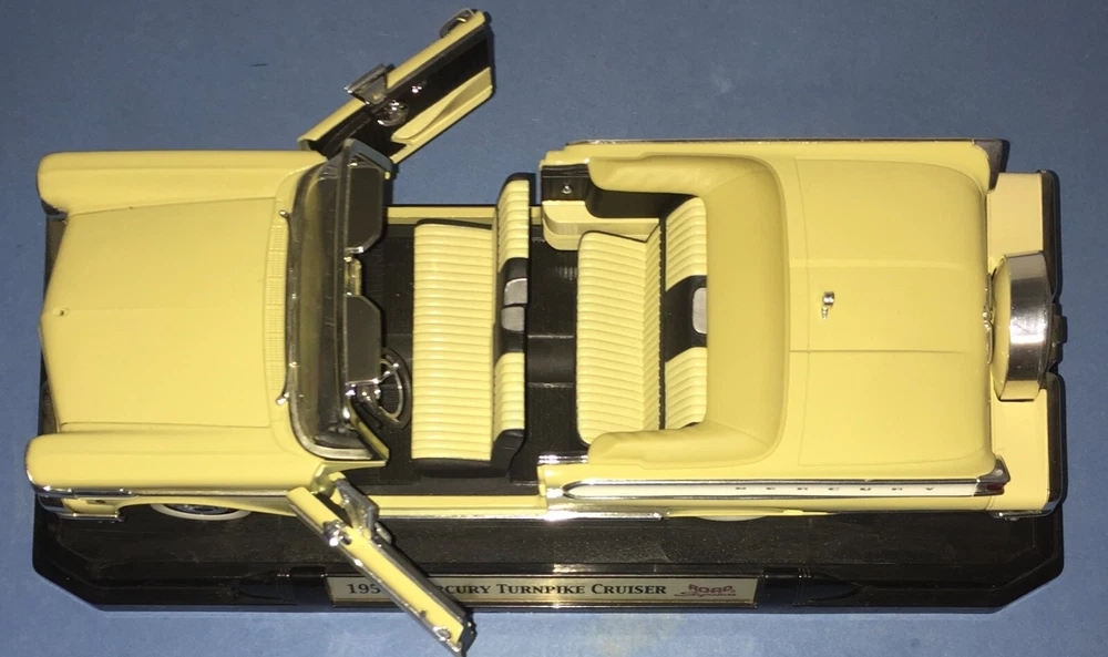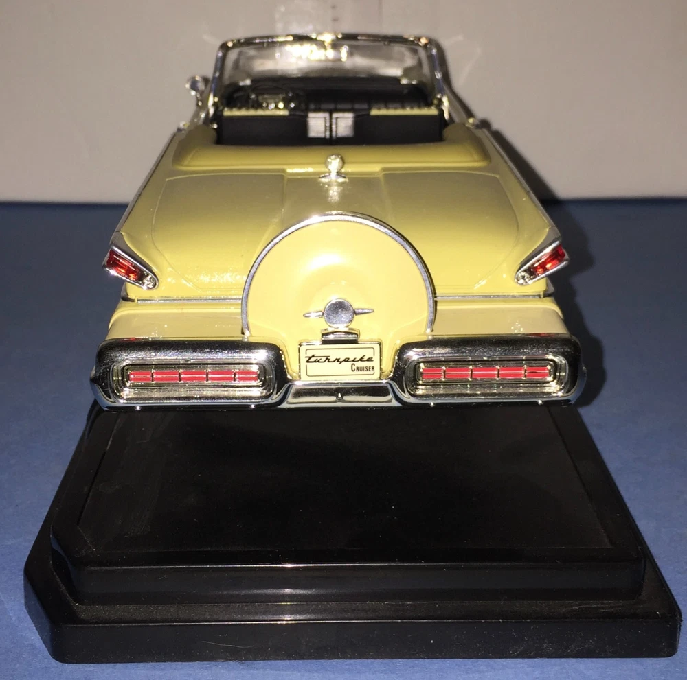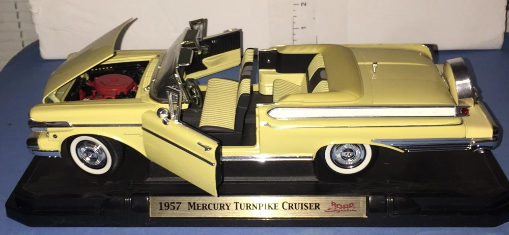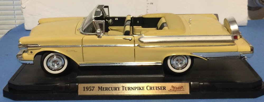 The product is a 1:18 scale diecast model of a 1957 Mercury Turnpike Cruiser by Road Signature. This detailed replica of the classic vehicle is a part of the contemporary manufacture of diecast and toy vehicles. The model features intricate design elements and is made of high-quality diecast material, making it a collectible piece for car enthusiasts and collectors.