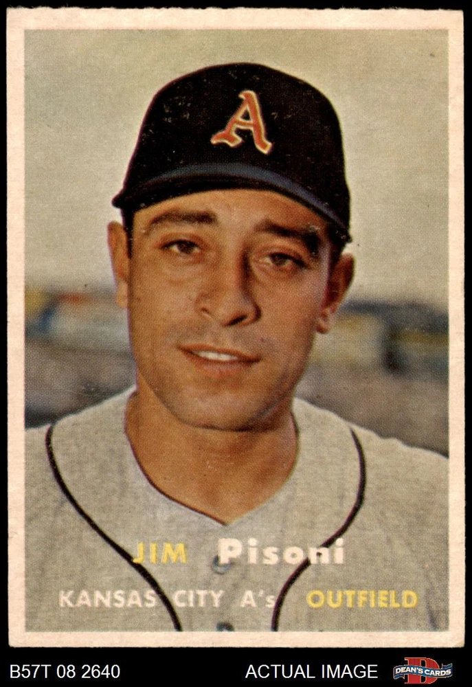 1957 Topps #402 Jim Pisoni Athletics 6.5 - EX/MT+ If the scan in the listing says ACTUAL IMAGE, you will receive the card pictured. For cards issued after 1983, we will often use representative images and you will not receive the exact card pictured. Shipping Policy You only pay shipping on the first item. If you order multiple items on the same order, you will only be charged once for shipping. We do not combine shipping on multiple orders. To avoid multiple shipping charges we recommend using eBay's "Add to Cart" feature to check out multiple items in one transaction, or please request and allow for us to send an invoice to reflect the combined shipping charges. Canadian customers - We send all of our Canadian/International packages with tracking and cannot make any exceptions to this policy. Negotiating Prices All prices are final and we do not negotiate. This policy is to ensure that everyone knows that they are getting our best possible price. So please do not ask us to negotiate on price. Return Policy Dean's Cards has a 100% Money Back Satisfaction Guarantee on all purchases, as long as the product is returned within 30 days of receiving the product. Card Grading Each card is first reviewed by a member of our team, in order to detect any flaws that may not be visible on a scan, such as wrinkles, creases, print spots, or light stains. The vast majority of our vintage cards are professionally graded by the Dean's Cards Grading Software and include a 100% satisfaction guarantee. Our grading is on par with PSA standards when it comes to corners, centering and flaws - and tends to grade a bit tougher than PSA, on cards with a tilted image or rough edges. This grading software was developed to provide far better grading and consistency than can be achieved using the human eye. Determining the card's grade The sharpness of the corners and the degree to which a card was cut off-center determines the maximum possible grade that the card can receive. The card's grade is further reduced by any flaws or blemishes that it may have. Each card is evaluated on the following characteristics and assigned a score. Corners - Each corner of a card is individually analyzed, and then assigned a score on how square, sharp, and flawless it appears. Centering - The borders are measured, at multiple points along the edge, to determine the horizontal and vertical centering and tilt. Defects - The card is examined for imperfections, such as: size, print flaws, dings, stains, creases, or other wear which could lower its grade. Bonus for Perfect Centering - A vintage card, with near perfect centering, is given a one-half grade bonus. So when you buy one of our cards with a half-grade (e.g. 3.5 or 6.5) it will appear perfectly centered, both vertically and horizontally. Grading Criteria Worst Corner - A card can grade only as high as the worst corner will allow. Average Corner Tilt - The difference in width of a card border near the top, compared to the bottom. OCT - The sum of how far a card is Off-Center, plus its Tilt. Minimum Centering Requirements Eye Appeal - The combination of a card's centering, corners and tilt. Well-Centered - Cards that appear perfectly centered receive a bonus of one-half grade. Flaws, defects and other imperfections - can lower a card's grade. Card Backs - the above criteria is also considered, for the back of the cards, but does not inflict as severe of a penalty to its grade. Packaging Once scanned, the cards are placed in "soft" sleeves, which have an open top for easy removal. The Dean's Cards label is placed on the top back of the card sleeve. Every card you buy features a QR Code that you can scan to see your ACTUAL CARD and its grading statistics. Please note that when images are enlarged there may be instances of vertical lines running through the scans. This was caused by a "dust speck" on the scanner and can be verified by the vertical lines running into the black margins on the top and bottom of the image. About Dean and Dean's Cards Dean's Cards Makes Card Collecting - Fast, Easy And Fun. Dean's Cards was founded in 2002 and has become the leading online seller of vintage sports cards and non-sports cards. Our inventory has grown to more than a million vintage cards and we have a staff of 15-20 employees and a 8500 sq. ft. office space in Cincinnati, Ohio.
