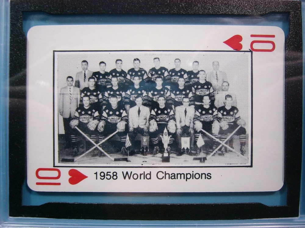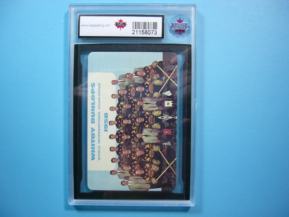 YOU ARE BIDDING ON A 1958 WHITBY DUNLOPS HOCKEY PLAYING CARD #NNO TEAM PHOTO . "10 OF HEARTS" CARD IS GRADED 10 BY KSA IN GEM MINT CONDITION. SEE SCANS FOR FURTHER CONDITION. GREAT COLOUR--A SUPER SHARP, CLEAN & ATTRACTIVE VERY IMPORTANT C ARD FROM TH IS UNIQUE VINTAGE PLAYING CARD HOCKEY SET!!! THANKS FOR LOOKING AND GOOD LUCK!!! ------------------------------------------------------------------------------------------------------------------------------------------------------- SHIPPING WITH TRACKING AND INSURANCE WITHIN CANADA IS $12.50, TO THE UNITED STATES $15.00 AND INTERNATIONALLY $55.00 (EVERYWHERE ELSE). ITEM WILL BE CAREFULLY PACKAGED SO AS NOT TO GET DAMAGED DURING SHIPPING. WE DO COMBINE SHIPPING ON MULTIPLE PURCHASES--ONLY 50 CENTS PER ADDITIONAL GRADED CARD OR ONLY 20 CENTS MORE PER ADDITIONAL SINGLE UNGRADED PHOTO OR CARD. TAKE A LOOK AT OUR OTHER AUCTIONS AND SAVE ON SHIPPING!!!