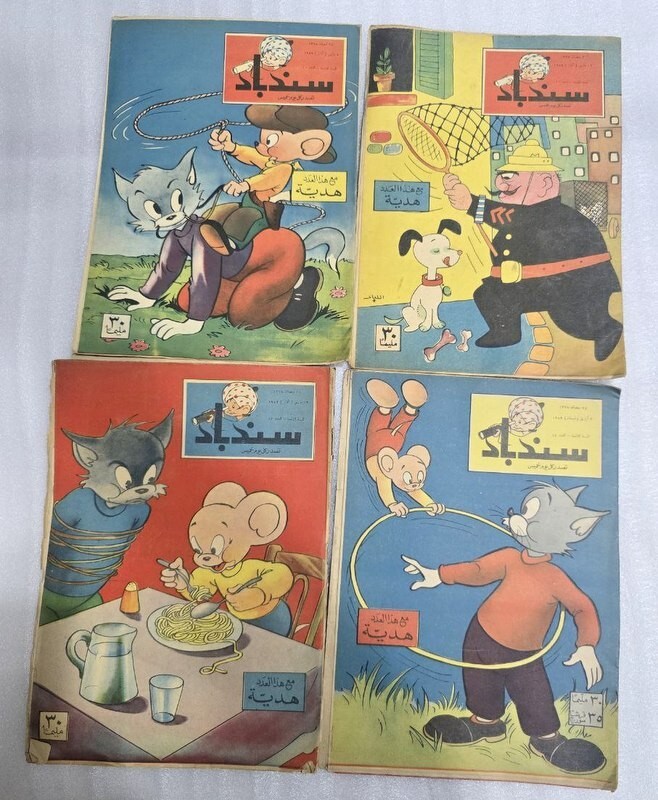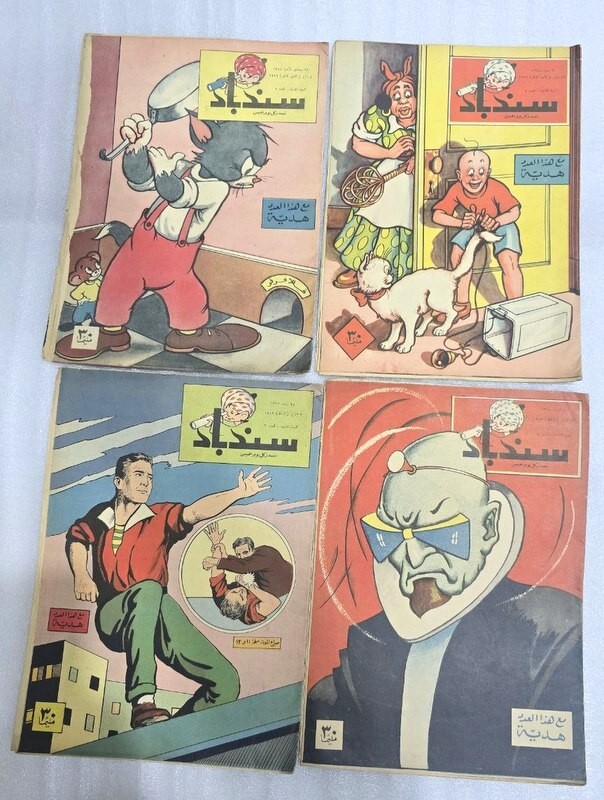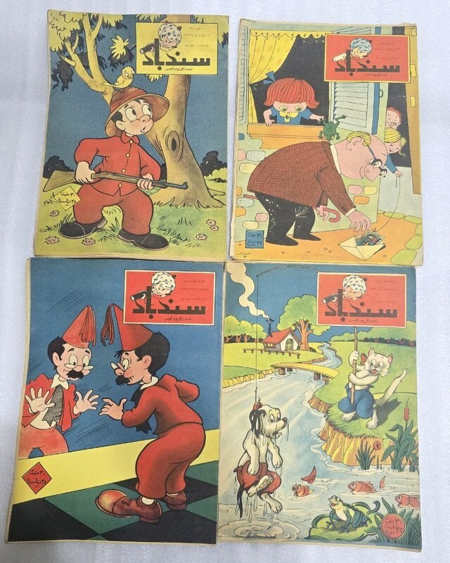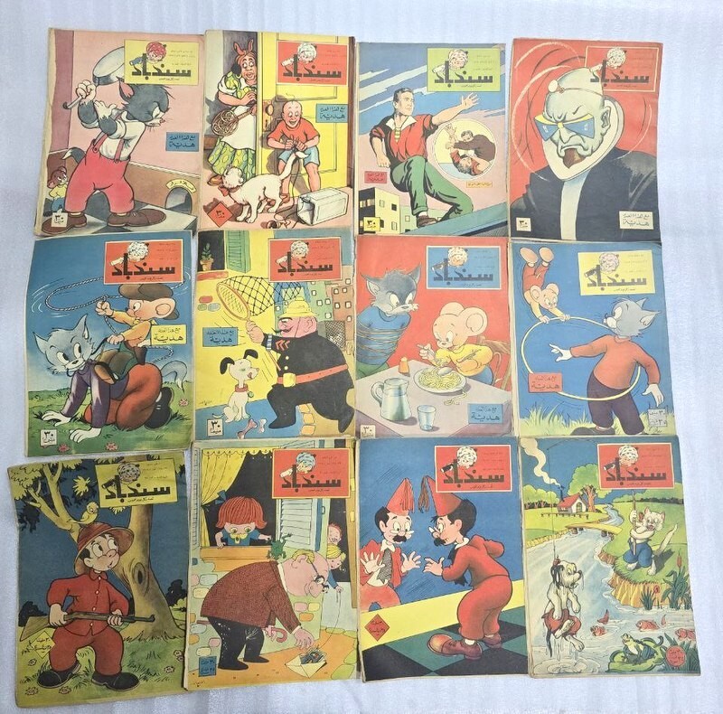 1959 Lot 12 Original Sindbad Arabic Comics Magazine #1 مجلة كومكس سندباد السنة الثامنة NO. 2 & 5 &6 &73 & 10 &11 & 12 &14 &23 & 24 &29 &30 Type: Original. Not a re-print Rare magazine المجلات أصلية وليس اعادة طبع Printed in Egypt. Dar Almaearif condition : In excellent condition size : 28 x 20 cm 16 pages