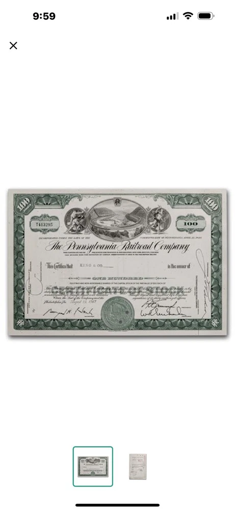 Home1959 THE PENNSYLVANIA RAILROAD COMPANY vintage stock certificate for 100 SHARES