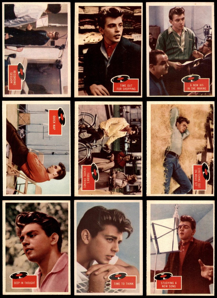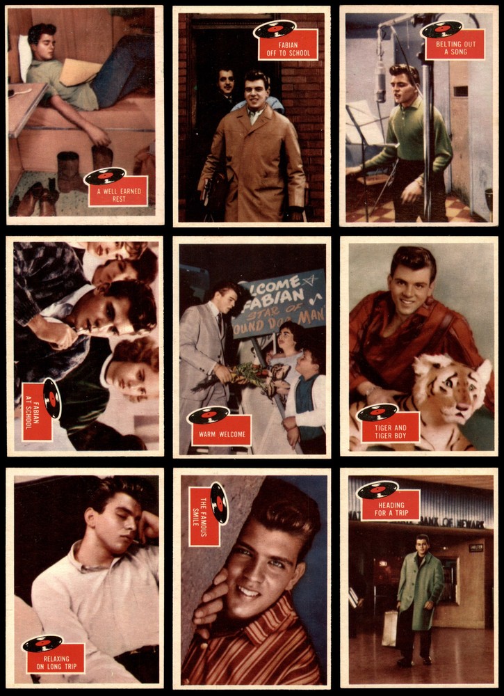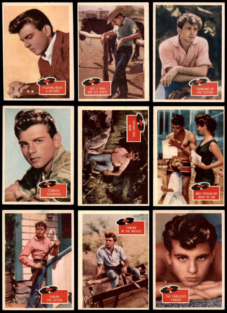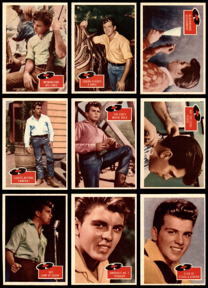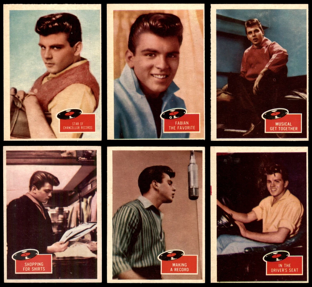 Absolutely thrilled with this vintage Fabian set! It's nearly complete—51 out of 55 cards—with most in excellent condition. The nostalgia factor is incredible, capturing the early days of Fabian's career. Each card has great eye appeal, and the mix of EX and VG/EX grades makes this a fantastic addition for any collector. The details, like "Making a Record" and "First Movie Role," are so fun to explore. Just a few cards short of a full set, but still an amazing piece of music and pop culture history. Highly recommended for fans of classic memorabilia!