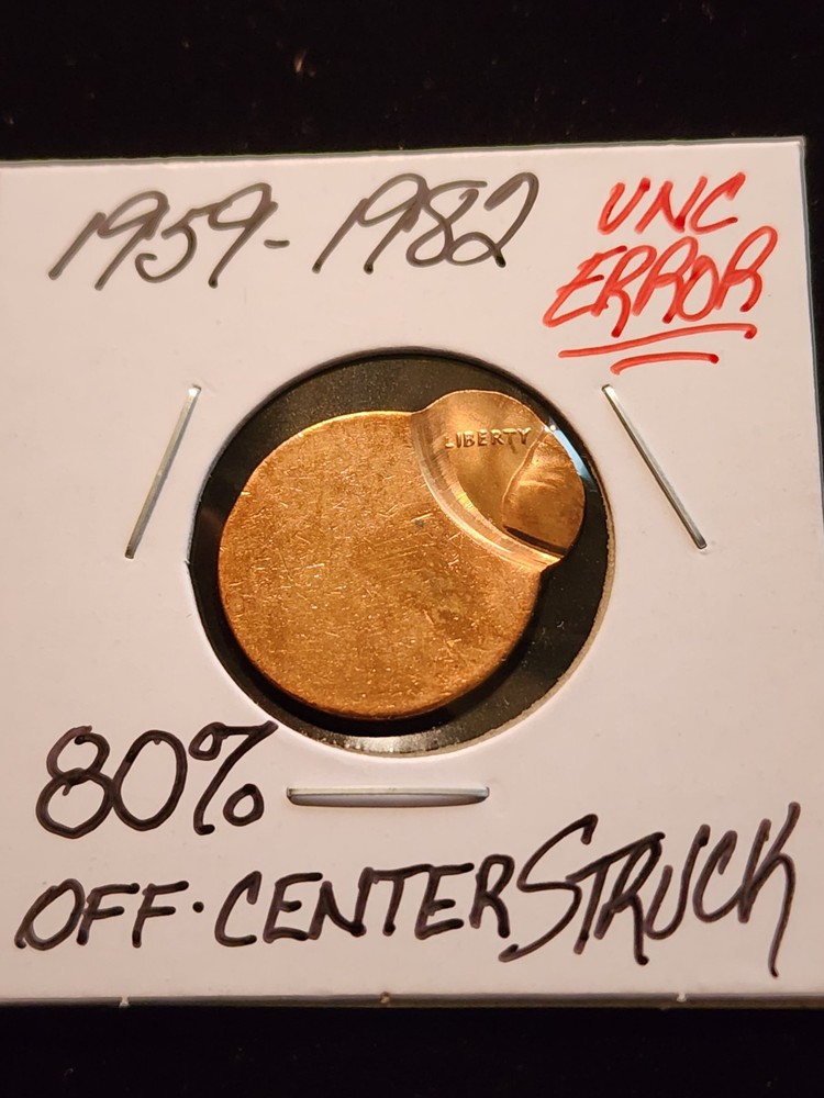 A GORGEOUS 1959-82 UNCIRCULATED RED LINCOLN MEMORIAL CENT THAT WAS STRUCK 80% OFF-CENTER IN ERROR!! A VERY ATTRACTIVE LUSTERFUL EXAMPLE!! SHIPPING CHARGES ARE AS FOLLOWS: -I DO NOT COMBINE SHIPPING COSTS ON BULLION/SILVER COINAGE SALES. -.99 SHIPPING ON AUCTION ITEMS UNLESS OTHERWISE POSTED. -PROOF COINAGE, BANKNOTES OR COINS GRADED BY THIRD PARTY GRADING COMPANIES LIKE PCGS,NGC,ANACS,ETC. HAVE EBAYS CALCULATED SHIPPING.