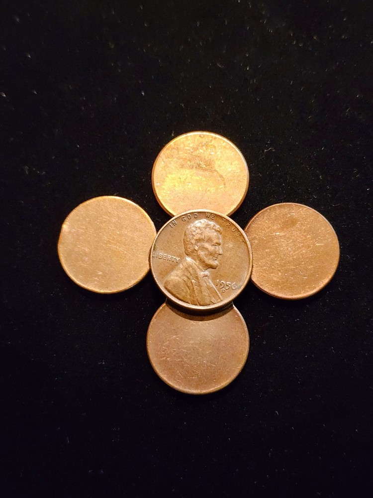 UP FOR GRABS IS THIS UNIQUE 4 ERROR COIN BUNDLE!! UNCIRCULATED 1959-82 LINCOLN MEMORIAL CENTS 85-98% OFF-CENTER STRUCK ERRORS!! THE FOUR COINS FORM THE OBVERSE PATTERN OF THE LINCOLN CENT ALMOST LIKE A GLOVE AS SHOWN IN PICTURES. THE 1956D LINCOLN CENT IS NOT INCLUDED, ONLY FOR REFERENCE IN PICTURE. THE STAND OUT PIECE IN MY OPINION IS THE "IN GOD" OFF-CENTER STRUCK COIN. JUST DISPLAYS WELL ON THE COIN. FROM THE STRIKE TWO OF THE COINS HAVE FOLDED LIPS AS SHOWN IN PICTURES. ALL THESE WEIGH 3.1 GRAMS SO ARE OLDER BETTER COPPER OFF-CENTER STRUCK COINS!! THE 4 COINS ARE STRUCK OFF-CENTER AT THESE DEGREES: 85% 2× 90% 98% OFF-CENTER STRUCK SHIPPING CHARGES ARE AS FOLLOWS: -I DO NOT COMBINE SHIPPING COSTS ON BULLION/SILVER COINAGE SALES. -.99 SHIPPING ON AUCTION ITEMS UNLESS OTHERWISE POSTED. -PROOF COINAGE, BANKNOTES OR COINS GRADED BY THIRD PARTY GRADING COMPANIES LIKE PCGS,NGC,ANACS,ETC. HAVE EBAYS CALCULATED SHIPPING.
