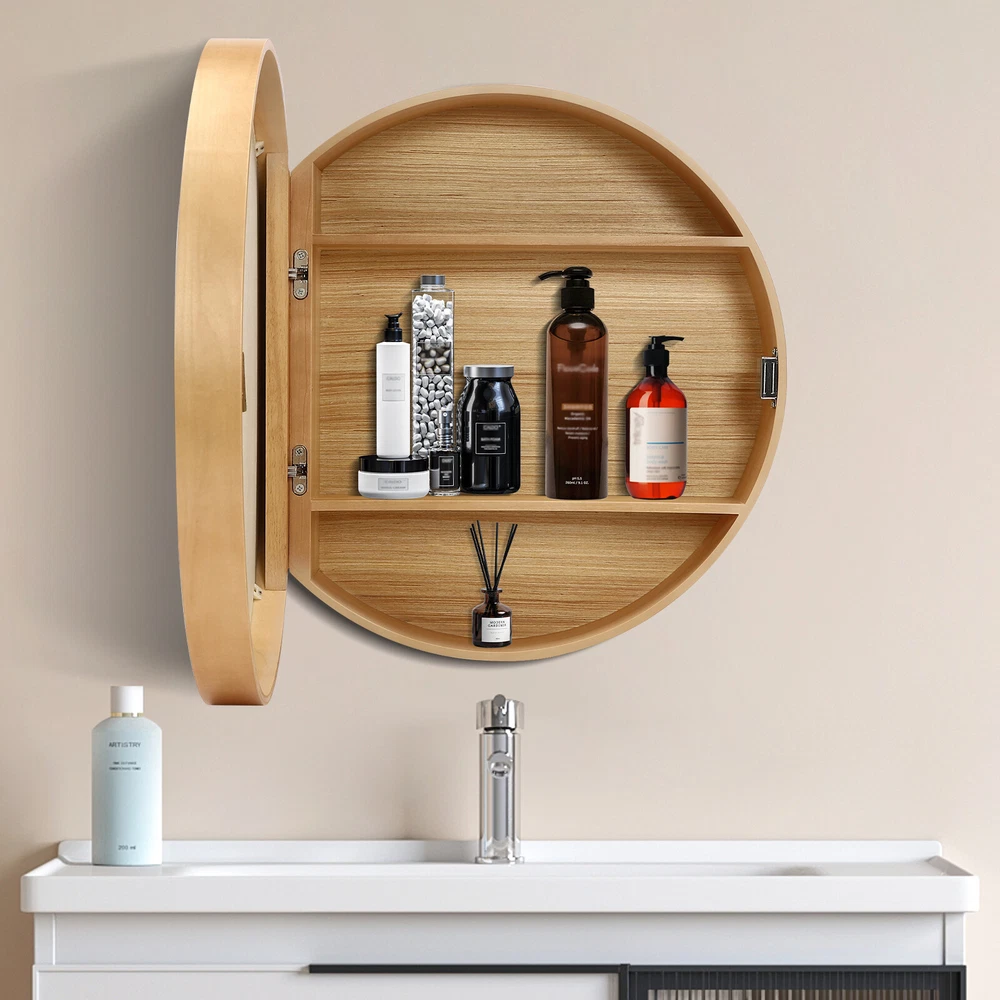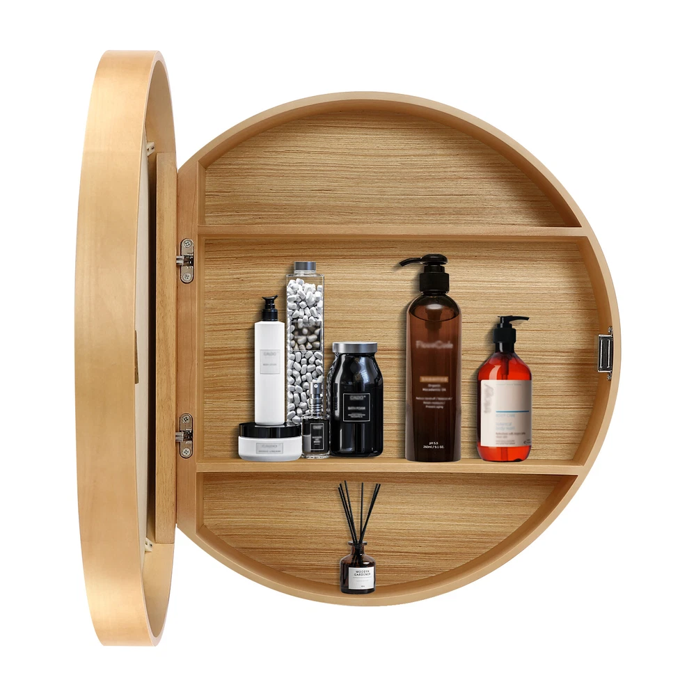 Specification Material: Wood, Glass Color: Log Colour Style: Modern Process: Painting Mounting Type: Wall-mounted Assembly Required: No Shape: Round Load Capacity: About 30kg/66.14lbs Product Size(D*H): 50*13.7cm/19.68*5.4in Gross Weight: 6kg/13.2lbs Package Size: 57*58*23cm/22.4*22.8*9.1in Package Included 1* Round Bathroom Mirror Cabinet Other Accessories for Assembly Medicine Cabinets w/Mirror, 19.6" Round Recessed Medicine Cabinet w/ 2 Shelves Description This round bathroom mirror cabinet we offer you has multiple functions. Firstly, it can make full use of the wall space in the bathroom. Secondly, it can be used to store cosmetics, skincare products, toiletries, and other daily necessities, so that you can easily and quickly get what you need. Last but not least, it can also beautify the spatial tone of the bathroom, making it more comfortable and warm. Key Features Build to Last: The product is made of high-quality wood with a painting process and glass, making it waterproof , non-toxic , odorless , solid, and durable, so it can be used for a long time. Two in One Design : A round mirror and cabinet in one for your daily use. You can open the door to access your cosmetics or toiletries (all not included), and the clear mirror makes it easy for you to wash up or do your make-up. Spacious Interior : The mirror cabinet's three internal tiers provide storage space for medicines, toiletries, and even small ornaments (all not included), which will make your bathroom look neat and spacious. Utilise Wall Space : By mounting the mirror cabinet on the wall, you can turn an empty wall in your bathroom, living room, or hallway into a functional space, saving you even more floor space and countertop space. Outstanding Load Capacity: High-quality materials and robust screw fixing allow for a 66.14 lbs load capacity, thus providing greater security for your object's storage. Effortless Clean : With its simple construction and smooth surface, you can simply wipe off surface dust with a damp rag. Practical Gift: Thanks to its exquisite design and beautiful appearance, you can choose this product as a holiday gift for family, friends, and loved ones. Customer Service : We aim to provide quality products and services. If you have any problems, please feel free to contact us. We will reply and solve the problem for you as soon as possible. Details Rounded Edges: The rounded edges not only ensure safe use but also enhance the aesthetics of the product. Magnetic Design : The magnetic mechanism on the cabinet door makes opening and closing easy and smooth. Application It can be used to store medicines, cosmetics, and toiletries. It is suitable for bathrooms, toilets, balconies, hotels, and other places. Specification Material: Wood, Glass Color: Log Colour Style: Modern Process: Painting Mounting Type: Wall-mounted Assembly Required: No Shape: Round Load Capacity: About 30kg/66.14lbs Product Size(D*H): 50*13.7cm/19.68*5.4in Gross Weight: 6kg/13.2lbs Package Size: 57*58*23cm/22.4*22.8*9.1in Package Included 1* Round Bathroom Mirror Cabinet Other Accessories for Assembl y Notes Please note that this product contains only one cabinet mirror without other items. Please allow the slight color difference caused by the shooting light and 1-3 cm error due to manual measurement, and make sure you do not mind before ordering. Payment Delivery details Terms of sales About us Contact us Payment We accept ebay payment 。 Fees such as import duties, taxes are not included in the item price or shipping costs. These charges are the buyer's responsibility. Delivery details Shipping: 2-9 working days to: USA Terms of sales We maintain high standards of excellence and strive for hundred percent customer satisfaction. Feedback is very important to us. We hope that you contact us immediately before you give neutral or negative feedback, so that we can address your concerns. It is impossible to address issues if we do not know about them! About us Your satis faction is our ultimate goal. We work hard to earn your trust and future business. Our certified technicians have tested each item before shipping. The unit comes with 1 year limited warranty on all manufacturing defects. a) If you receive a defective item, you may return it or ask for a discount. Please contact us within 14 days after you receive the package. b) What you returned must be intact and in its original packaging as re? u. Customer is responsible for shipping costs of the returned item. c) We will cover the cost of shipping back t with the shipping rate indicated in the registration page. We will send you a new unit or refund the full payment you paid. Thank you. Contact us Business Hour Business Hour: Monday To Friday: 8:30 AM to 5:00 PM (Beijing China time) Due to time zones, our reply to your questions may not be immediately. But within above working time, we will reply your email within 24 hours. If it's non-workdays, please kindly be patient and wait till Monday. Please contact us with ebay message. Please feel free to contact us if you have any questions. Monday To Friday: 8:30 AM to 5:00 PM (Beijing China time) Due to time zones, our reply to your questions may not be immediately. But within above working time, we will reply your email within 24 hours. If it's non-workdays, please kindly be patient and wait till Monday. Please contact us with ebay message. Please feel free to contact us if you have any questions. Type Round Bathroom Mirror Cabinet Material Wood, Glass Color Log Colour Style Modern Process Painting Mounting Type Wall-mounted Assembly Required No Shape Round Load Capacity About 30kg/66.14lbs Product Size(D*H) 50*13.7cm/19.68*5.4in Gross Weight 6kg/13.2lbs Package Size 57*58*23cm/22.4*22.8*9.1in Brand Unbranded Item Length / Item Width / Item Height /