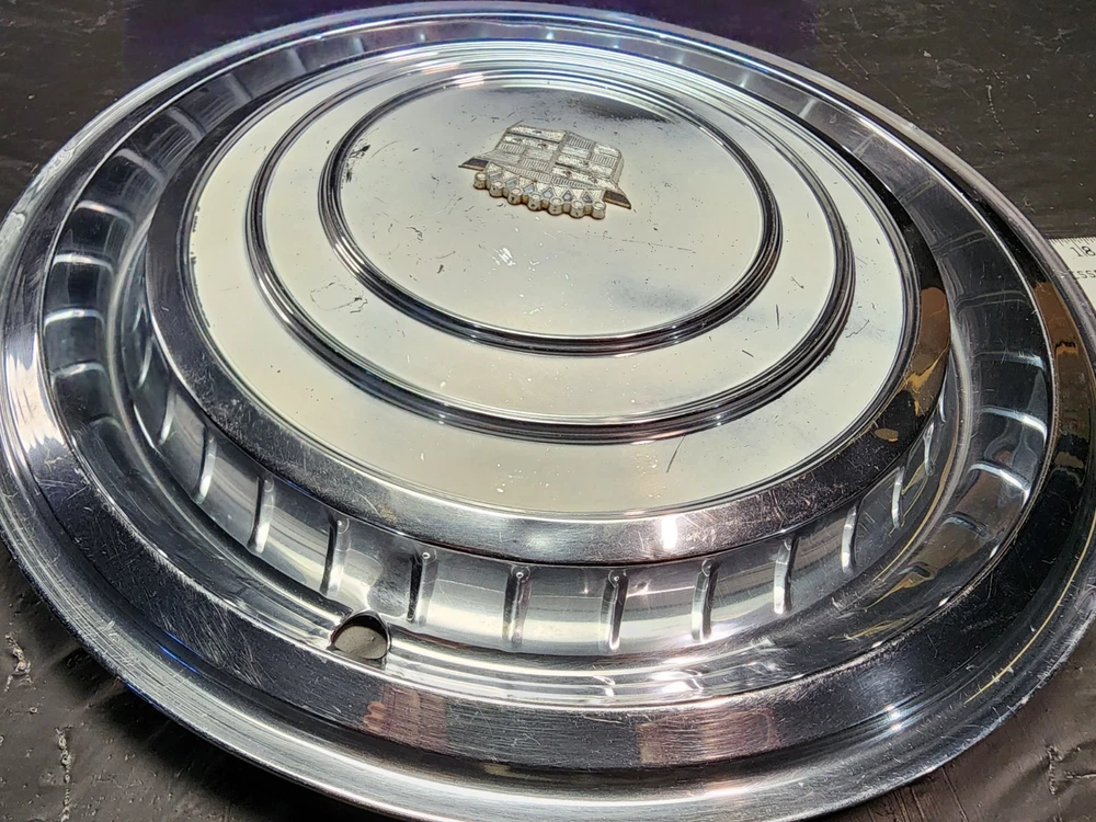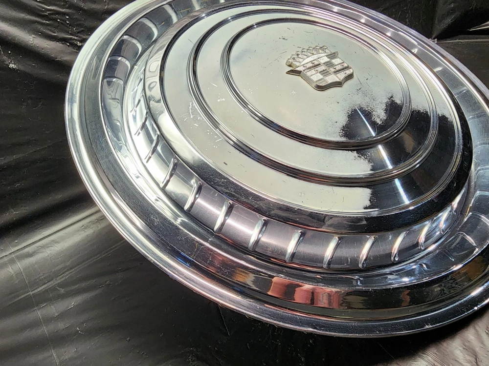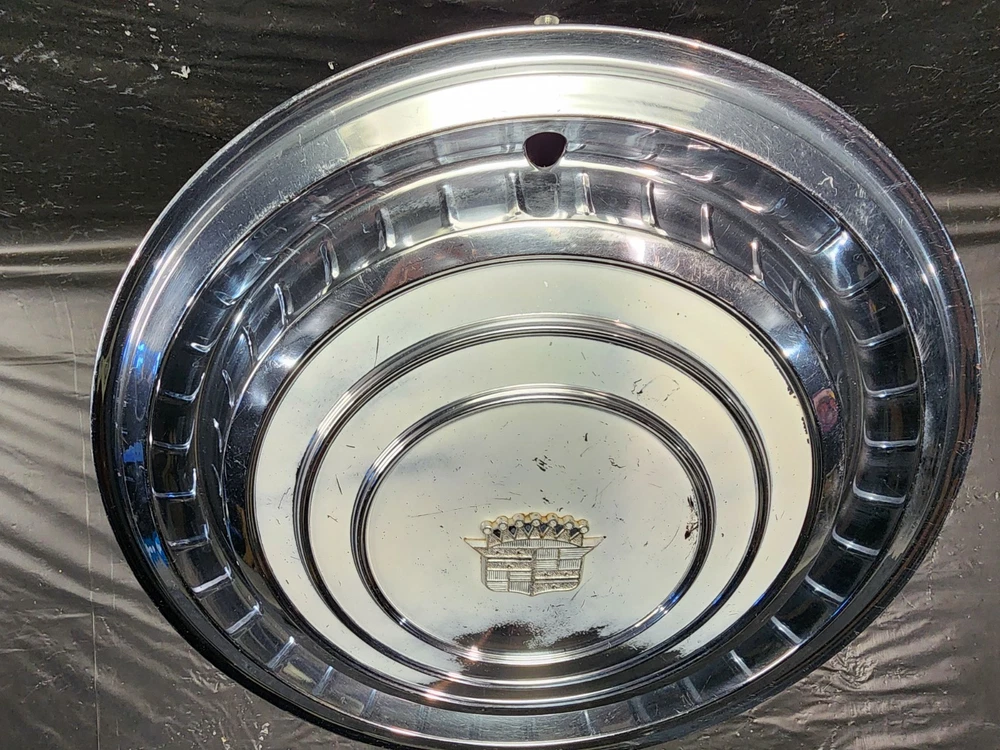 Vintage 40s 50s 60s 70s hub caps. 1960 Cadillac single Original OEM Factory OE hubcaps wheel covers center caps. in good condition considering their age and being used. These are Used hubcaps off of old classic cars that were driven on the road and used, so please see photos for complete condition as they are not all perfect. Most have some fading, dings, scuffing, mineral staining, etc could use a good polishing to bring em back to full shine, but otherwise in beautiful condition. Check out more of my ebay page as we are going through and listing a ton of classic / vintage hubcaps from the the 20's 30's 40's 50's 60's 70's 80's 90's 00's and up. all different makes and models such as Ford Chevy Chevrolet GM Cadillac GMC camero nova Chevelle Nomad Bel Air Mercury Corvette Mustang Oldsmobile Pontiac Lincoln Dodge Plymouth Buick Chrysler Mopar Fairlane Volkswagen Cheiftain Challanger Charger 1500 4x4 muscle car hot rod rat rod Cars and Trucks 15in 14in 16in and so much more from full sets to sets of 2 and singles, you name it check us out!
