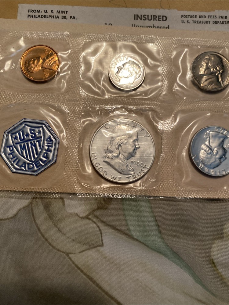 The product is a 1960 proof set of 5 US coins, each composed of 90% silver, minted by the US Mint in Philadelphia. The set includes coins with a denomination of 50 cents and a total precious metal content of 0.61 oz. The coins are uncirculated and come in an original envelope, making it a valuable addition to any coin collection.3