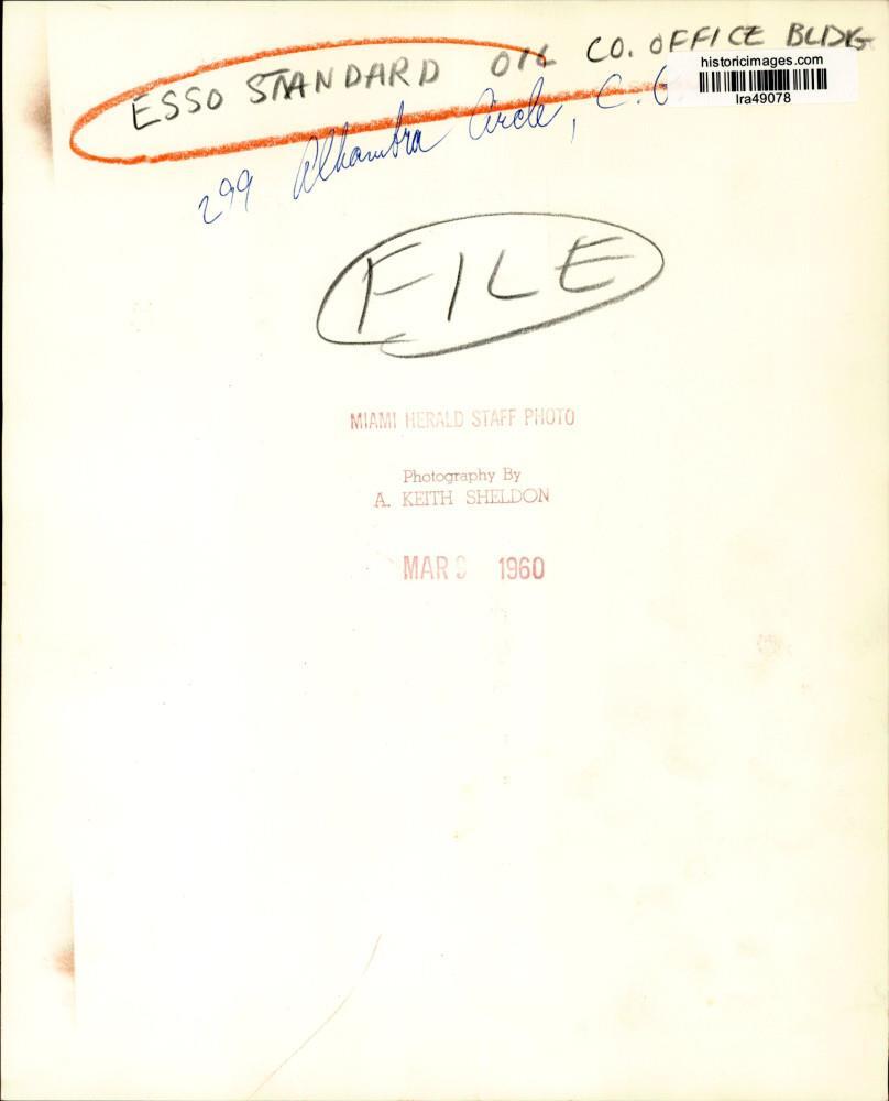 ebay template Note: Please study the images carefully to determine the condition of this vintage photograph, as it may not be in perfect condition. It may contain wrinkles, cracks, and possibly even tears due to its age and how it was handled before it got to us. A scanner may interpret colors and contrast differently than human eyes will, so it is possible that the actual photograph may be slightly darker or lighter in person. This vintage photograph is offered for sale as a collectible item and conveys no transfer of copyright. 1960 Press Photo The Esso Standard Oil Company office at 299 Alhambra Circle This is an original press photo. Esso Standard Oil Company office, 299 Alhambra CirclePhoto measures 8.25 x 10inches. Photo is dated 3-9-1960. PHOTO FRONT PHOTO BACK Historic Images Part Number: lra49078 FAQs Q: Can I just download a digital version instead? A: No, we sell only vintage originals and do not make or distribute any copies, including digital ones. Q: Do you combine shipping and invoices? A: Multiple photos won on the same seller ID combine automatically through the eBay checkout process. If you encounter problems with this, send us a message via eBay messaging and we will send you an invoice. Due to eBay limitations, we cannot combine items won on our different seller IDs for a single shipping charge. Q: How quickly do you ship the items once paid? A: We ship within one business day after your payment clears. If you do not receive an "order shipped" email from us by the close of the second business day from submitting payment, please e-mail us via eBay messaging. Q: How do you make sure my photograph arrives safely? A: We package each order between two cross-corrugated pieces of cardboard to ensure that the package is as difficult to bend as possible. We then wrap each order in a plastic sheet to help protect against moisture. We want you to rest assured that we take every precaution to ensure that the photograph you receive will be in the same condition in your care as it was in ours. Q: Will the "Historic Images" watermark be on my photo when I receive it? A: No. This is a digital watermark we use to protect our images. It is not printed on the photo. Q: What are your office hours? A: eBay for us is a business, and a very fun one to be in! We are open M-F 9 to 5 (CST). Therefore, we do not return e-mails and phone calls over the weekend. We observe the following holidays: New Years Day, Memorial Day, Fourth of July, Labor Day, Thanksgiving and the day after Thanksgiving, Christmas Eve and Christmas Day. Q: Where did all these vintage photos come from? A: These original vintage photographs are from various news service and newspaper photo archives from locations around the country including: Boston, Detroit, Tampa, Chicago, Denver, Seattle, New Orleans, Milwaukee, Portland, Spokane, and more. We do not copy or reproduce any photographs -- every item is a unique vintage piece that was housed in a news archive. Q: Can I use this photograph in my book/blog/website? A: The short answer is no. There is no transfer of copyright for republication or reproduction with these photographs when you purchase them, and only photographs taken before 1923 are currently automatically in the public domain. Permission from the copyright holder, which usually can be identified from the back of each photo, must be sought to republish or reproduce the image for any purpose. Q: Do you relist items (in case I miss an auction ending)? A: Auction items that receive no bids are relisted in our store (historicimages-store on eBay) as a fixed-price item and at a higher price than the starting auction price. Q: Do you leave feedback? A: Yes, we always leave feedback for buyers. Our software monitors when our buyers leave us feedback, then notifies us that we can leave feedback for the buyer. Rest assured, if you leave feedback, we will do the same! Check out our family of eBay IDs: historicimages01 Sports Photos historicimages02 Entertainment Photos historicimages03 Americana Photos historicimages04 International & War Photos historicimages05 Transportation Photos historicimages06 Photos of All Subjects historicimages07 Entertainment Photos historicimages08 Newsworthy Photos historicimages09 Entertainment Photos historicimages10 Sports Photos historicimages-store Our largest fixed-price selection historicimages-gallery Hand-picked photos Saturday night auctions About Us Historic Images was formed in September 2009, with a handful of scanners working out of a basement to digitize newspaper photo archives. We have since moved out of the basement, and we can now archive thousands of photos per day. Our company has worked with magazines and newspapers from Detroit, Boston, Denver, Seattle, Tampa, Chicago, and New Orleans, just to name a few. We are constantly adding to our inventory, and have assembled an archive of millions of photos to date. As our company evolved, we began our eBay business, which brings thousands of fresh auctions per week to the world's largest online auction marketplace. Our custom software systems and team of great employees allow us to efficiently scan and sell large photo archives online. At the very core of our company's DNA is a strong commitment to customer satisfaction and strict integrity for our product. Our promise to you is that we will do everything in our power to provide you a great buying experience. Copyright 2009 - Present, Historic Images, Inc. Sell Smarter with Kyozou. Inventory and Ecommerce Management