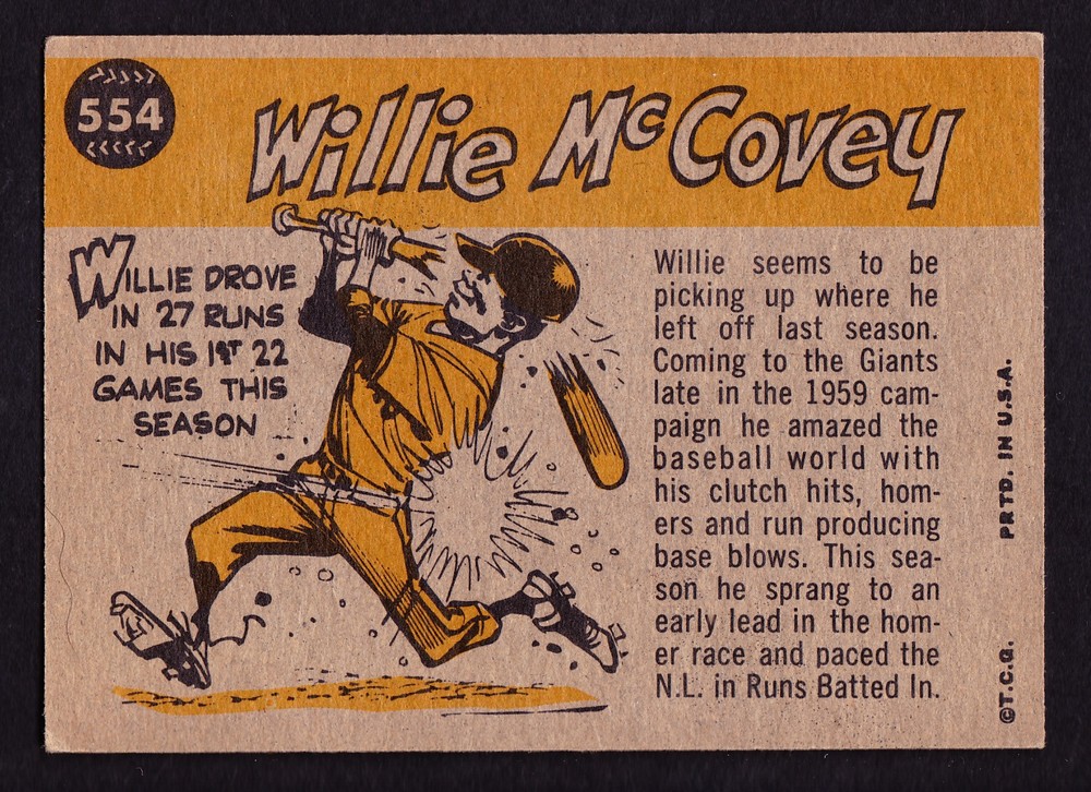 1960 TOPPS #554 WILLIE McCOVEY ALL-STAR. CARD HAS NO CREASE . FREE SHIPPING. Inventory #240722-1