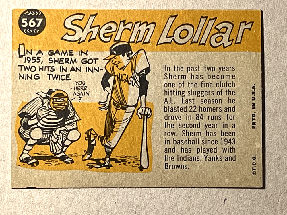Capture a piece of baseball history with the 1960 Topps #567 Sherm Lollar card, celebrating the Chicago White Sox alum's 1960 All-Star season. A cherished collectible for any fan, this card brings vintage appeal and a touch of nostalgia to your collection. The card features the esteemed Sherm Lollar, known for his exceptional skill behind the plate, and is part of the iconic 1960 Topps set, recognized for its classic design and collectibility. A must-have for enthusiasts of the sport and collectors of Major League Baseball memorabilia.