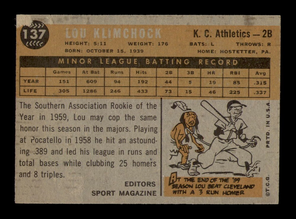 1960 Topps #137 Lou Klimchock EX-MT Baseball Card OBGcards