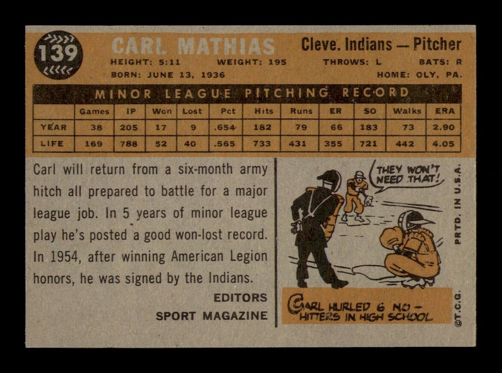 Graded: No Card Manufacturer: Topps Original/Reprint: Original Player: Carl Mathias Sport: Baseball Series: Varies Season: 1960 Year: 1960