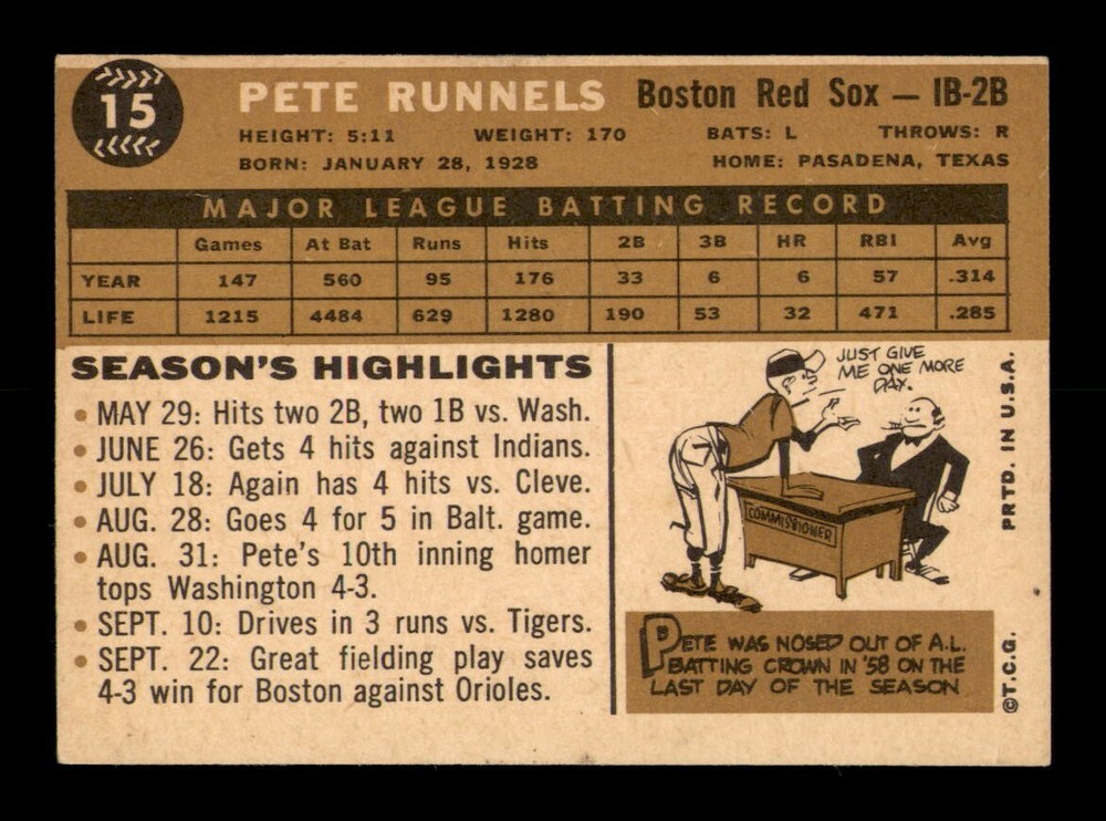 1960 Topps #15 Pete Runnles VG Vintage Baseball Card OBGcards