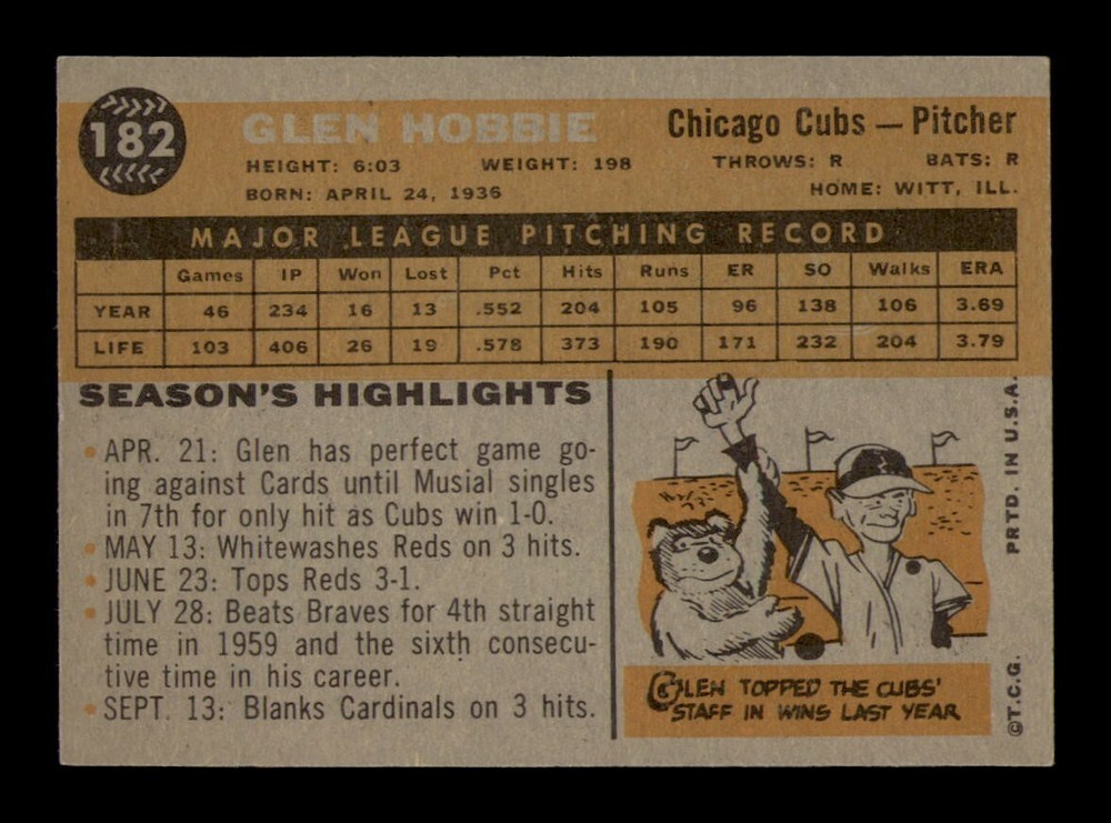 1960 Topps #182 Glen Hobbie EX-MT Baseball Card – OBGcards