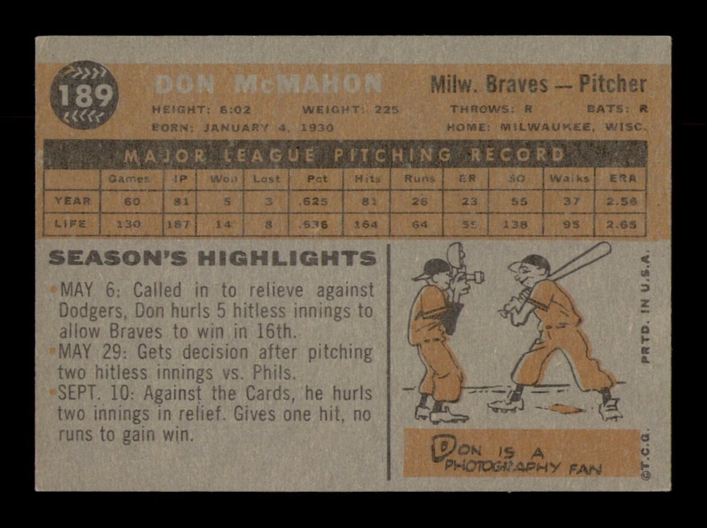 $ 3.171960 Topps #179 Rip Coleman EX-MINT Baseball Card OBGcards