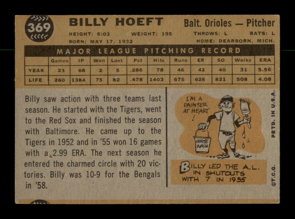 Team: Varies Year: 1960 Card Condition: Excellent Player: Billy Hoeft Graded: No Series: Varies Card Manufacturer: Topps Sport: Baseball Season: 1960 Card Number: 369 Original/Reprint: Original