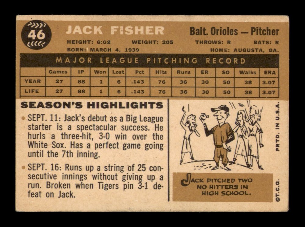 Player: Jack Fisher Original/Reprint: Original Card Manufacturer: Topps Season: 1960 Year: 1960 Graded: No Sport: Baseball