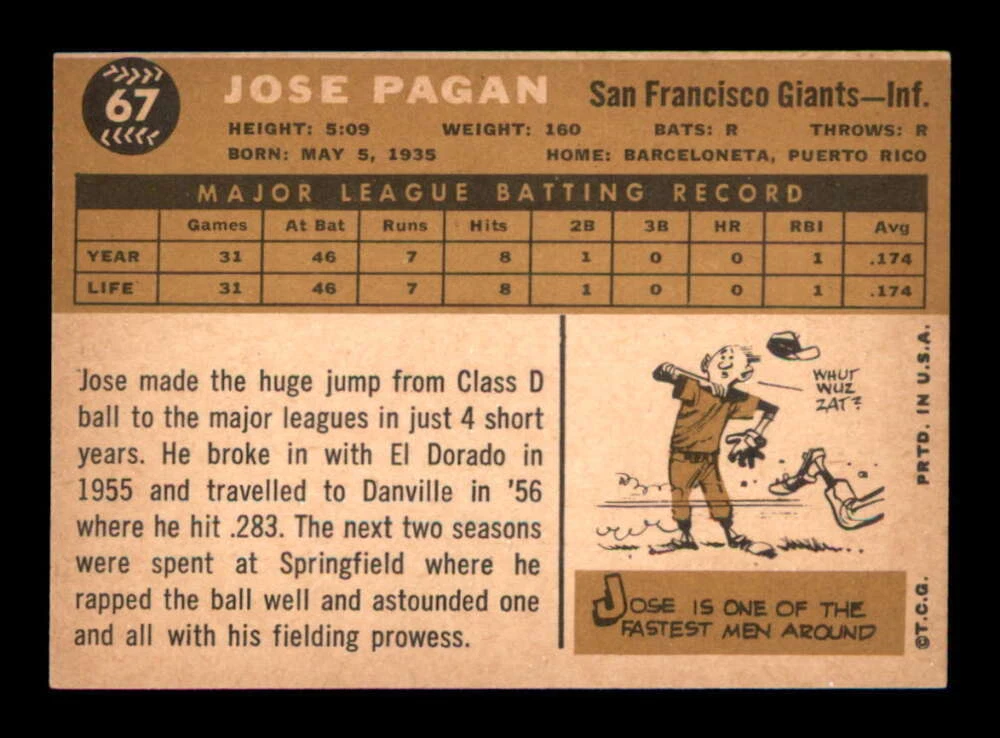 1960 Topps #67 Jose Pagan RC EX/EX+ X3241907