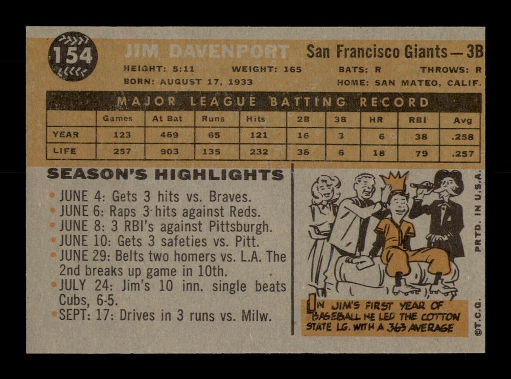 1960 Topps Bobby Davenport #154 NM Baseball Card OBGcards Vintage Set Break