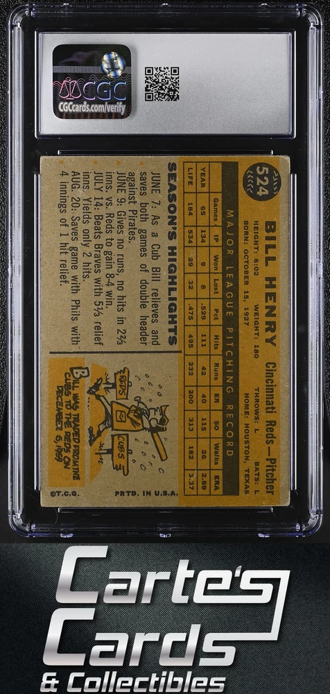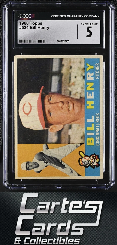 1960 TOPPS #524 BILL HENRY REDS . CARD HAS NO CREASE . FREE SHIPPING. Inventory #231101-2