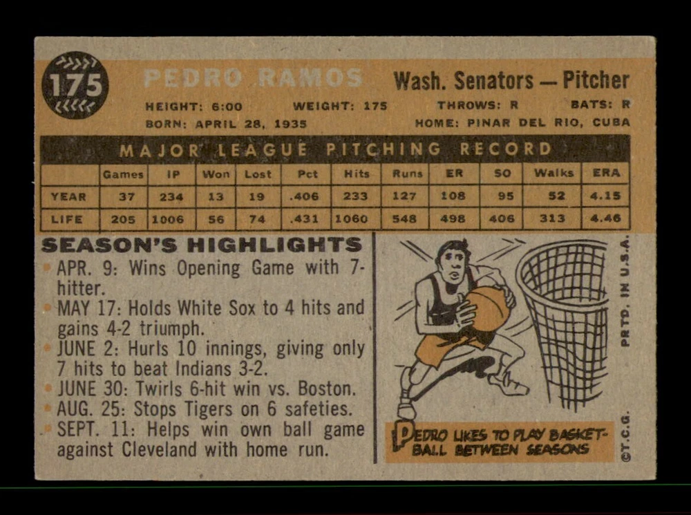 Card Manufacturer: Topps Year: 1960 Sport: Baseball Series: Varies Graded: No Player: Pedro Ramos Season: 1960 Original/Reprint: Original