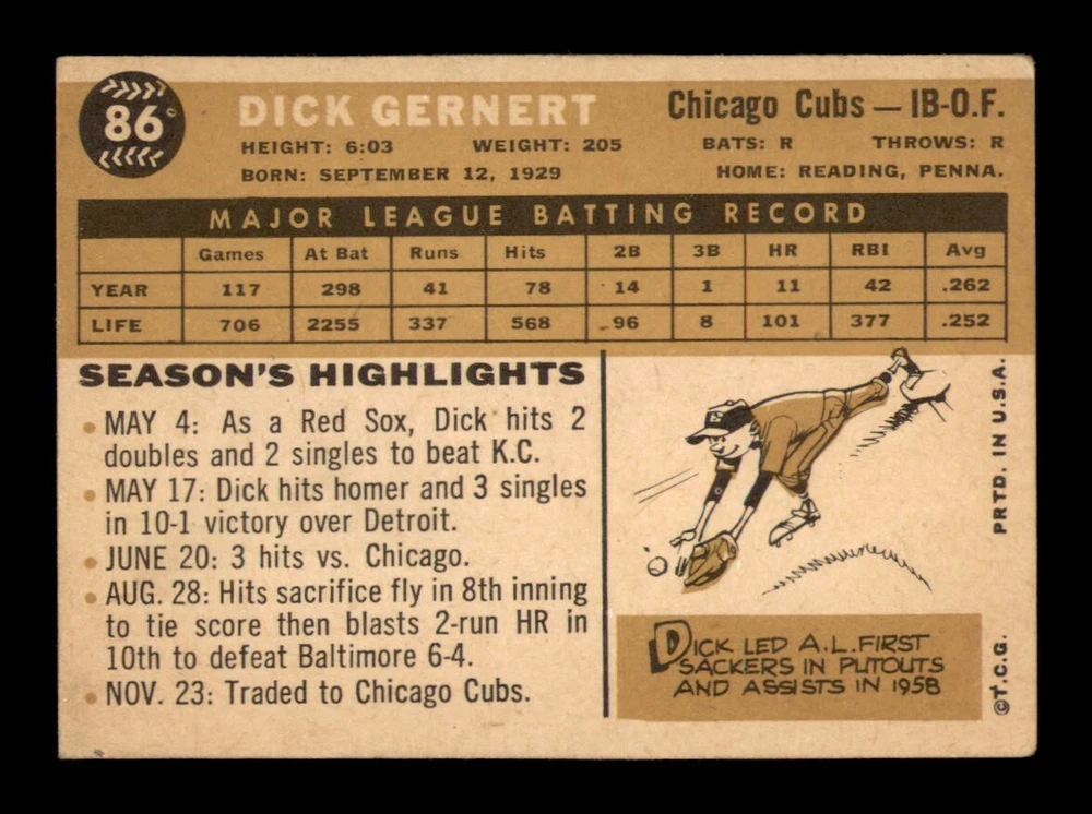 1960 Topps Set Break #86 Dick Gernert VG-EX *OBGcards*
