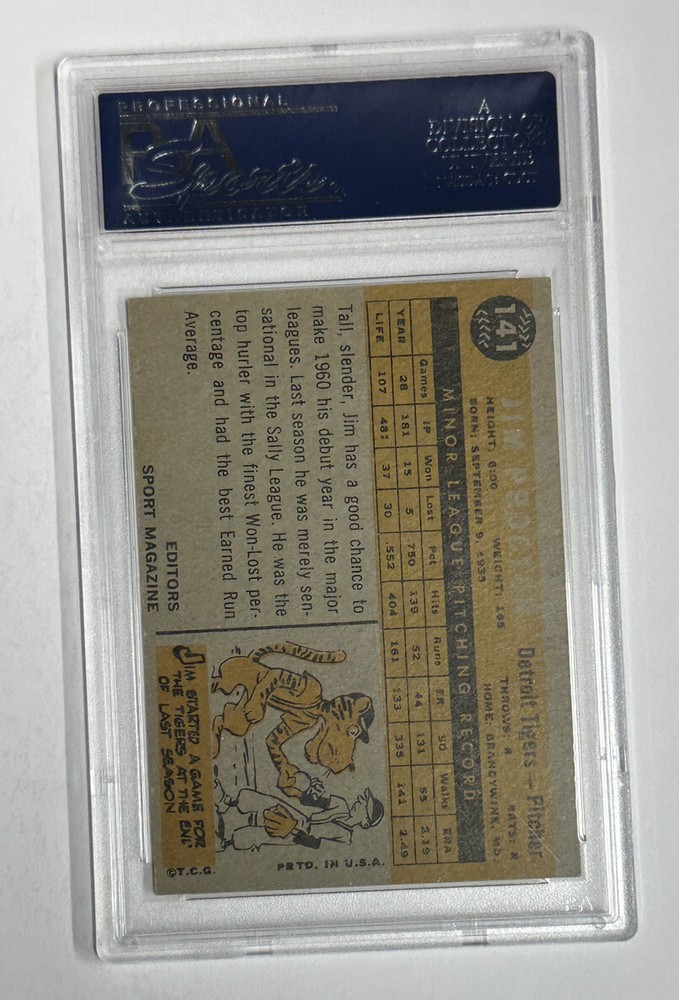 1960 Topps - Sport Magazine 1960 Rookie Star #141 Jim Proctor (RC). Centering is good, color, gloss, corners and edges appear sharp. Despite the age of the cards the colors just pop as if they were new. Corners and edges might show some very slight wear in isolated areas as they are 60 plus year old cards. I do my best to evaluate each card carefully but please examine high-resolution pic as price of card is determined by that pic. All cards are shipped in a brand new Ultra-Pro Premium top loader with an Ultra-Pro premium plastic sleeve to protect your card for years. Please read our reviews. Customers are pleased with their card purchases from NMMT Vintage. Tired of dealers sending lazy careless shipments of your cards? We are different! Customers rave about our care in shipping and handling your treasure regardless of its value. eBay Standard envelope shipping will have a cardboard support as well as the Ultra-Pro Premium top loader. First class shipping will have two cardboard backers as well as the Ultra-Pro Premium top loader and will be mailed in a bubble envelope. This vintage card is a great addition to any collection and is sure to be a conversation starter.