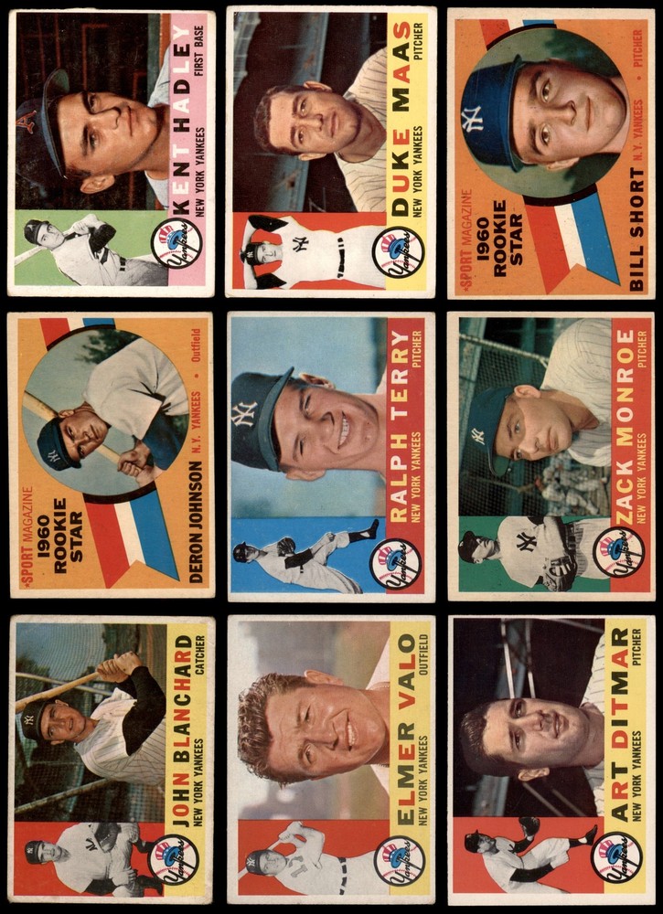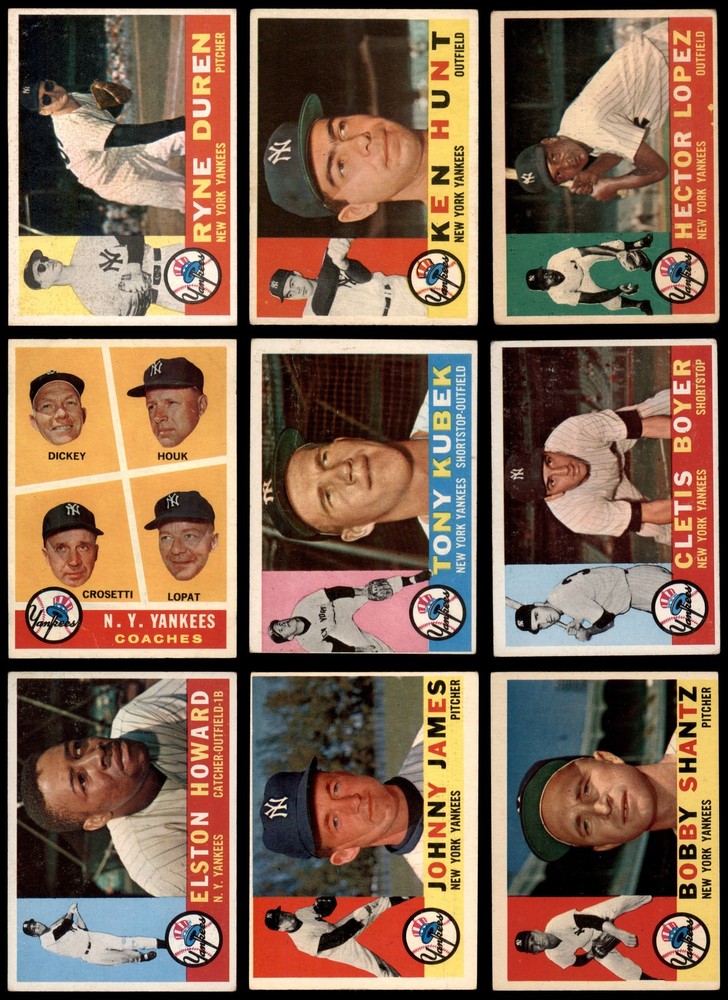 This vintage 1960 Topps Yankees team set brings back serious nostalgia! The cards show great character with the classic pennant-winning roster. While conditions vary, each piece has solid eye appeal, especially that sharp Elston Howard and Tony Kubek in VG. A fantastic collection for any Yankees fan or vintage collector – these authentic pieces of baseball history still hold up beautifully.