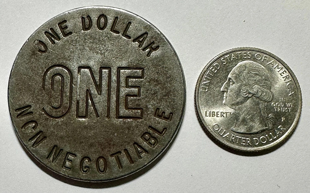 As I understand these were given away by the las Vegas tourist center in the mid 1960s into the 1970s to promote local Casinos. There are 3 different types, this is type 3; thin 1. Weight: 24.80g Diameter: 41mm Thickness: 2mm Please take a look at my other listings for I do combine shipping for a cheaper shipping rate but please wait to pay until I send invoice with correct shipping charge. Also if there is a specific card(s)/coin(s)/item that you’re looking for please don’t hesitate to ask. I may have the item you’re looking for. 🙂 This auction is a great item that you or someone you know would love to have. So please check all pictures to determine the condition for yourself, for this will be the item(s) the winner of this auction wins. SHIPPING AND RETURNS: I have a 1 day to same day handling on shipping, of course Sundays (no usps running) there is nothing I can do but get it out first thing Monday mornings. Once shipped, it will usually takes 3-5 business days to arrive at your door, sometimes less! Please be advise with the winter season coming USPS might be running slower than normal so please be patient and know that once it’s in the mail I have ZERO control of the item. I respectfully ask that you communicate with me if there is a problem before leaving a negative review. I am here to help as best as I can. Please advise that there will be NO Returns / NO Refunds on items as you understand your buying the item in the pictures AS IS so please double check photos. Please message me if you have any questions. Happy bidding