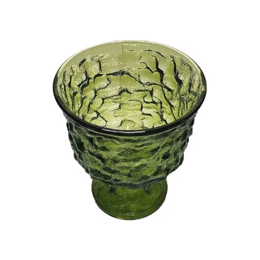 This unique goblet vase is a must-have for any collector or lover of retro decor. The emerald green color & crinkle textured finish make it a beautiful addition to any space. Its perfect for displaying flowers or as a stand-alone art glass piece in the window. This piece measures 8½" tall & 3½" wide. Crafted by E.O. Brody in the 1960s, it's an original piece of mid-20th century art in excellent condition! Will ship with immense care & FAST. If you have any questions or would like more pictures of a certain angle I may have missed, just reach out & I will reply promptly. Thank you!