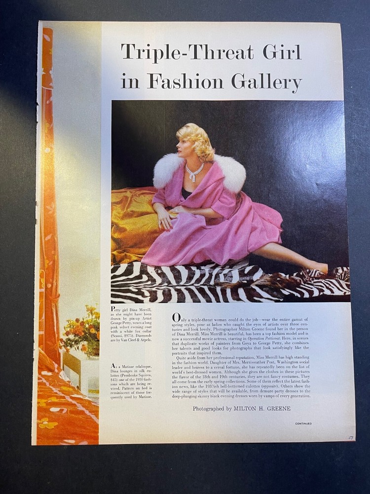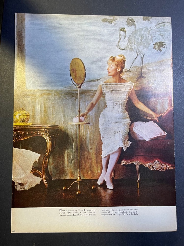 This vintage 1960 Diana Merrill fashion model article is a stunning piece for collectors! The five-page spread includes six beautiful illustrations, each roughly 10.5x14 inches, perfect for framing. Though it shows slight age toning and minor corner wear, the overall condition is excellent—great for adding retro charm to any collection. Ships securely in a sturdy mailer for safe delivery. A fantastic find for fashion and history enthusiasts alike!