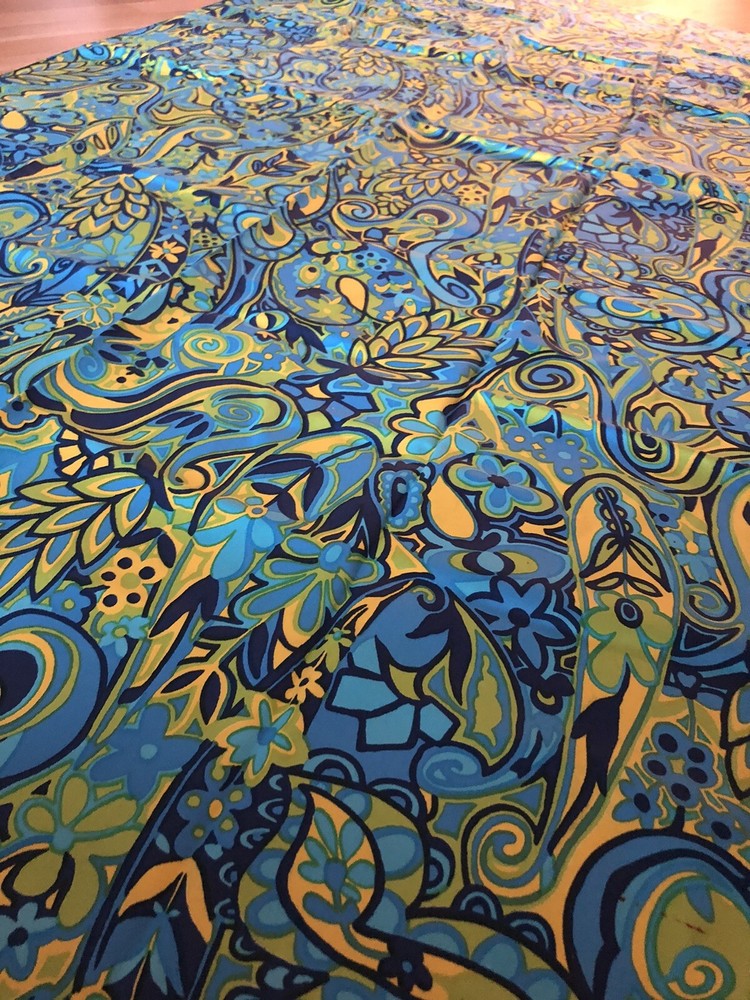 Coupon de satin de coton imprimé des années 1960. Dimensions 190 x 90 cm. Bon état.