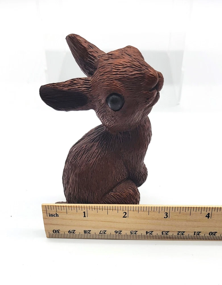 BRAND: Red Mill Manufacturing, USA, 1960s. MATERIAL: Crushed Pecan Shells and Resin. STYLE: Sweet Detailed sitting Bunny, Easter SIZE: Approximately 4" Tall and 3" Wide. COLORWAY: Chocolate Brown CONDITION: This sweet little bunny was made in the 1980s by Red Mill Manufacturing, USA. They specialized in making figurines from crushed Pecan Shells and gained quite a following. This bunny would be adorable in any collection or to decorate for Spring/Easter. He is in very good condition and I have found no serious issues considering his age. Sure to bring a smile to anyone's face, such a cutie!! Thank you for shopping with me today and hope your have a wonderful day!!