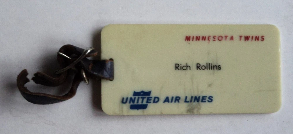 Very Scarce ~ One of a kind Collectors piece!!! ~ Minnesota Twins ~ Rich Rollins ~ United Air Lines Personalized Equipment Luggage Tag ~ 1.5x3.5" ~ with leather strap. ~ Please see photos for condition ~ *** Be sure to check out our other Twins & RARE Sports Collectibles in our eBay store ***