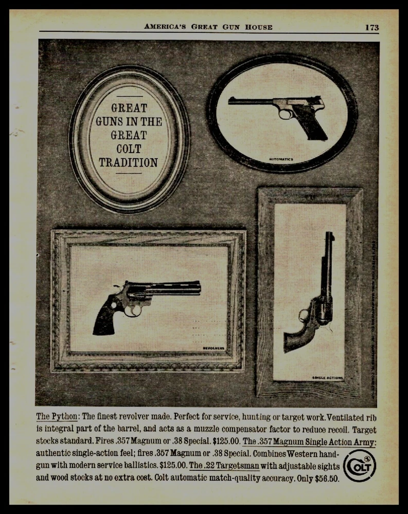 1961 COLT Python Single Action Army .57 Magnum Revolver Targetsman Pistol AD