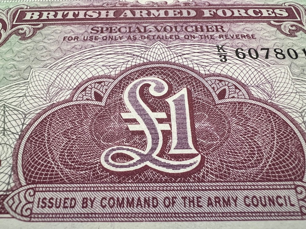 1962 British 1 Pound Armed Forces Banknote Voucher Cold War Soviet Era M36 One authentic 1962 British Armed Forces special voucher 1 pound banknote. These notes are in uncirculated condition in the sense that they have not been actively used. Per the pictures, I have confirmed these banknotes to be authentic, they have a security thread in the paper. I have also examined them under a microscope. Serial numbers on these bills will be different from those in the pictures. If you have any questions, feel free to ask. Shipping Returns Shipping Returns I offer FREE shipping on all orders in the United States! Your order will be shipped within 1 working day of receiving payment (Monday-Friday) and you should expect to receive it within 2 to 5 days after dispatch. Although somewhat rare, sometimes USPS is slow and can take up to 7 days to deliver your order. Your order will arrive in a yellow envelope. In the very unlikely event that your item is lost or damaged during post, then I am responsible and will issue either a full refund or replacement. If you do not receive your order within 7 days after it is shipped, please send me a message and I will work with you to solve the issue. I offer refunds or replacement in scenarios where items are lost or damaged in mail. If you are not 100% satisfied with your purchase, you can return the product and get a full refund or exchange the product for another one, be it similar or not. You can return a product up to 30 days after you purchased it. Any product you return must be in the same condition you received it and in the original packaging. Please keep the receipt. One authentic 1962 British Armed Forces special voucher 1 pound banknote. These notes are in uncirculated condition in the sense that they have not been actively used. Per the pictures, I have confirmed these banknotes to be authentic, they have a security thread in the paper. I have also examined them under a microscope. Serial numbers on these bills will be different from those in the pictures. If you have any questions, feel free to ask. 1962 British 1 Pound Armed Forces Banknote Voucher Cold War Soviet Era M36 One authentic 1962 British Armed Forces special voucher 1 pound banknote. These notes are in uncirculated condition in the sense that they have not been actively used. Per the pictures, I have confirmed these banknotes to be authentic, they have a security thread in the paper. I have also examined them under a microscope. Serial numbers on these bills will be different from those in the pictures. If you have any questions, feel free to ask. Shipping I offer FREE shipping on all orders in the United States! Your order will be shipped within 1 working day of receiving payment (Monday-Friday) and you should expect to receive it within 2 to 5 days after dispatch. Although somewhat rare, sometimes USPS is slow and can take up to 7 days to deliver your order. Your order will arrive in a yellow envelope. In the very unlikely event that your item is lost or damaged during post, then I am responsible and will issue either a full refund or replacement. If you do not receive your order within 7 days after it is shipped, please send me a message and I will work with you to solve the issue. I offer refunds or replacement in scenarios where items are lost or damaged in mail. Returns If you are not 100% satisfied with your purchase, you can return the product and get a full refund or exchange the product for another one, be it similar or not. You can return a product up to 30 days after you purchased it. Any product you return must be in the same condition you received it and in the original packaging. Please keep the receipt. One authentic 1962 British Armed Forces special voucher 1 pound banknote. These notes are in uncirculated condition in the sense that they have not been actively used. Per the pictures, I have confirmed these banknotes to be authentic, they have a security thread in the paper. I have also examined them under a microscope. Serial numbers on these bills will be different from those in the pictures. If you have any questions, feel free to ask.