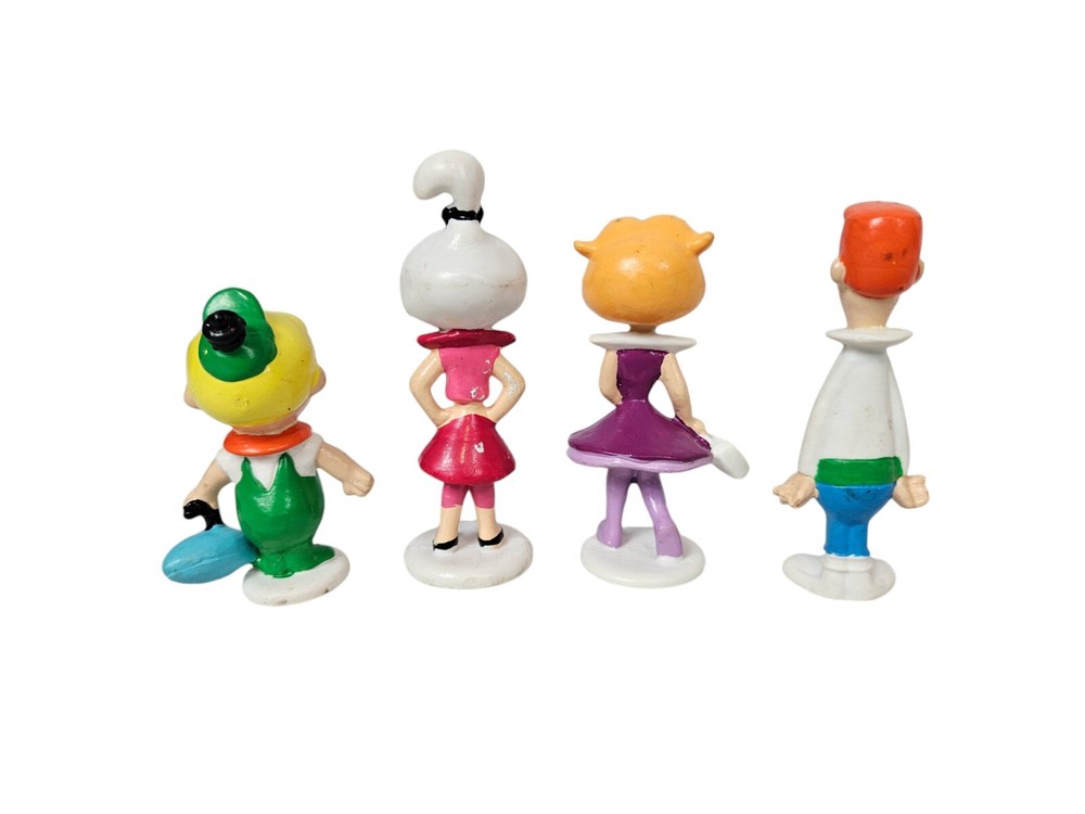 Vintage 1962 Applause Hanna Barbera The Jetsons PVC Figurines Lot of 4 W22 In great vintage condition Vintage 1962 Applause Hanna Barbera The Jetsons PVC Figurines Lot of 4. Features 1962 Applause and Hanna Barbera The Jetsons PVC figurine lot of 4, bottom stamp with date, cake toppers, perfect for the Hanna Barbera Jetsons collector. Set includes: George Jetson Jane Jetson Judy Jetson Elroy Jetson Measurements approx height 2.5" width 1" Fabric plastic This is a pre-owned item that may show signs of wear. In great vintage condition, Judy Jetson has some paint wear on her back. 14 Day returns accepted under the following conditions: Item must be in the same condition as stated If item shows additional wear buyer will receive a partial refund Buyer pays all shipping costs Refund amount will be for the item price only Please contact me prior to starting a return
