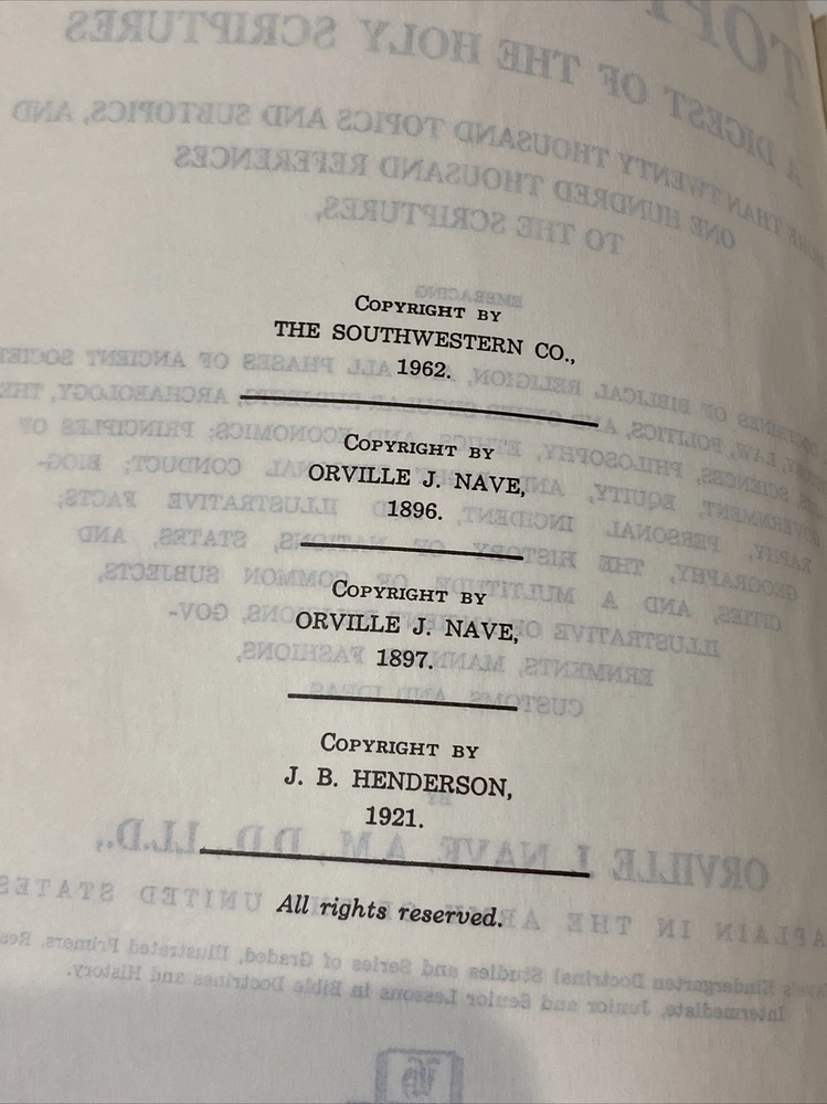 Vintage NAVE'S TOPICAL BIBLE Digest of Holy Scripture (Southwestern 1962) Tabs. Shows some/little signs of age. Good condition.