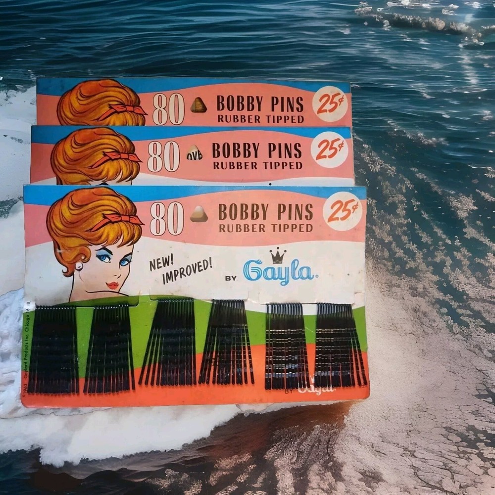 This vintage 1963 Gayla Bobby Pins On Large Card is a must-have for any collector of vintage hair accessories. The pins are made of metal and have a beautiful gold color. The brand is Gayla and the decade is 1960s. The card is unseen and the pins are unknown to be original or reproduction. The item was made in the United States. This is a great addition to any vintage collection. This is a nice blast from the past! These items have discoloration from storage on the cards. Pictures show! The pins are in great condition! All questions are welcomed