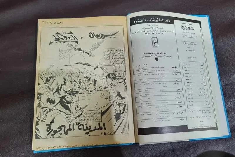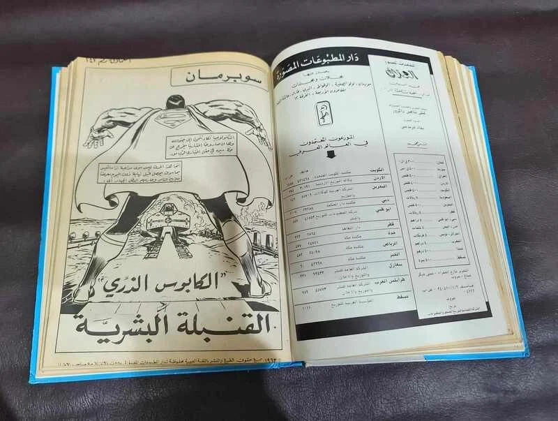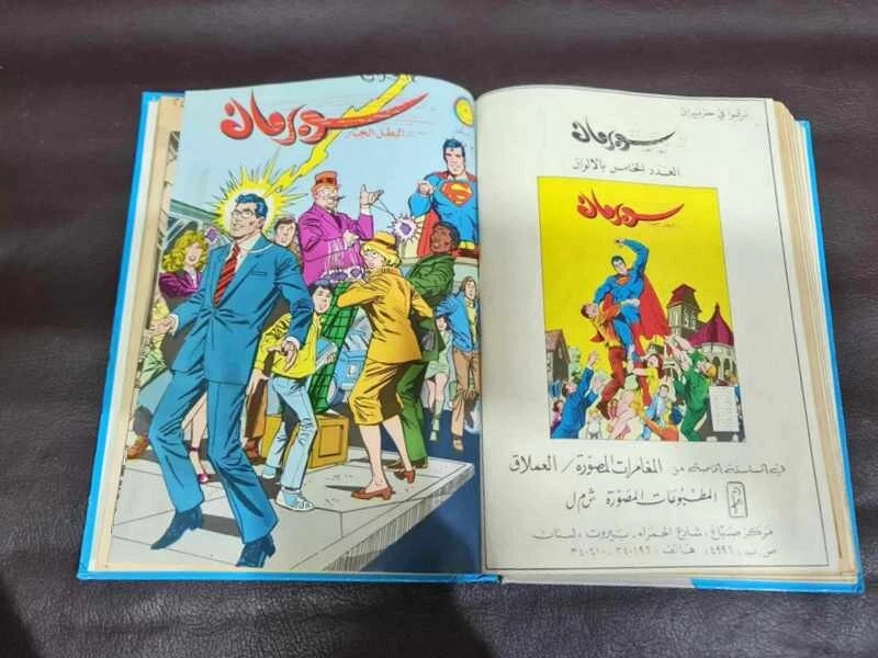 1963 Vintage Arabic Superman Comics Magazine #58مجلد كومكس سوبرمان سوبر مان NO. 241 - 243 - 245 - 247- 249 -251 من اصدارات المطبوعات المصورة 1963 350 pages Size : 17x 24 cm Very Good and has been read but is in excellent condition . small tears to spine , yellowed due to age.