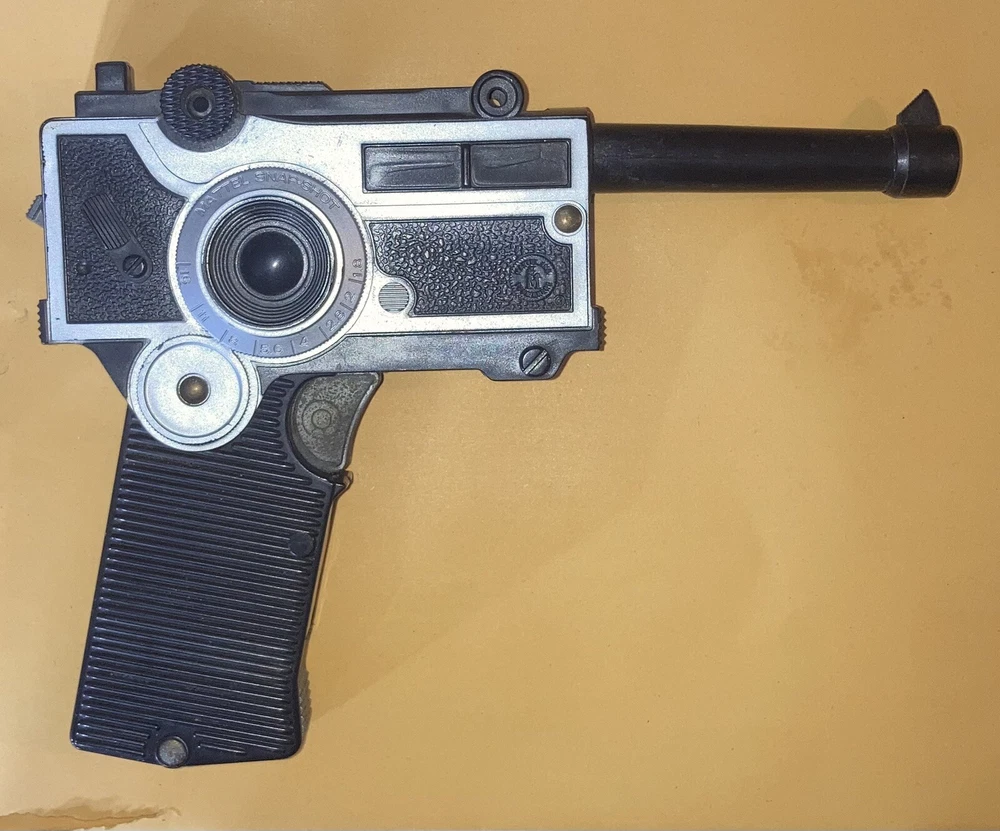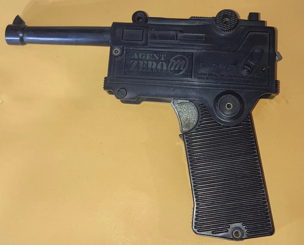 1964 Mattel Agent Zero M Snap Shot camera pistol. This is part of Mattel’s “Zero M” spy toy line that included several ordinary objects that converted into play weapons like this. This listing is for the Snap Shot. It looks like a camera, but when you press the side lever, it converts into a cap gun that kids could use to defend their neighborhood from any evil spies that may be around. It’s still in great shape with nothing broken or otherwise damaged that I can find. See pics for details. Buyer pays shipping. Payment due within 2 days of auction end. All items ship within 3 business days. Thanks for looking!