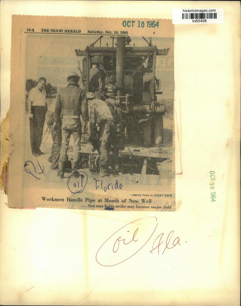 ebay template Note: Please study the images carefully to determine the condition of this vintage photograph, as it may not be in perfect condition. It may contain wrinkles, cracks, and possibly even tears due to its age and how it was handled before it got to us. A scanner may interpret colors and contrast differently than human eyes will, so it is possible that the actual photograph may be slightly darker or lighter in person. This vintage photograph is offered for sale as a collectible item and conveys no transfer of copyright. 1964 Press Photo Workmen Handle Pipe at Mouth of New Well - lrx55408 This is an original press photo. Workmen Handle Pipe at Mouth of New Well....Sun says Felda strike may become major field. Photo measures 8 x 10.25inches. Photo is dated 10-10-1964. PHOTO FRONT PHOTO BACK Historic Images Part Number: lrx55408 Sell Smarter with Kyozou. Inventory and Ecommerce Management
