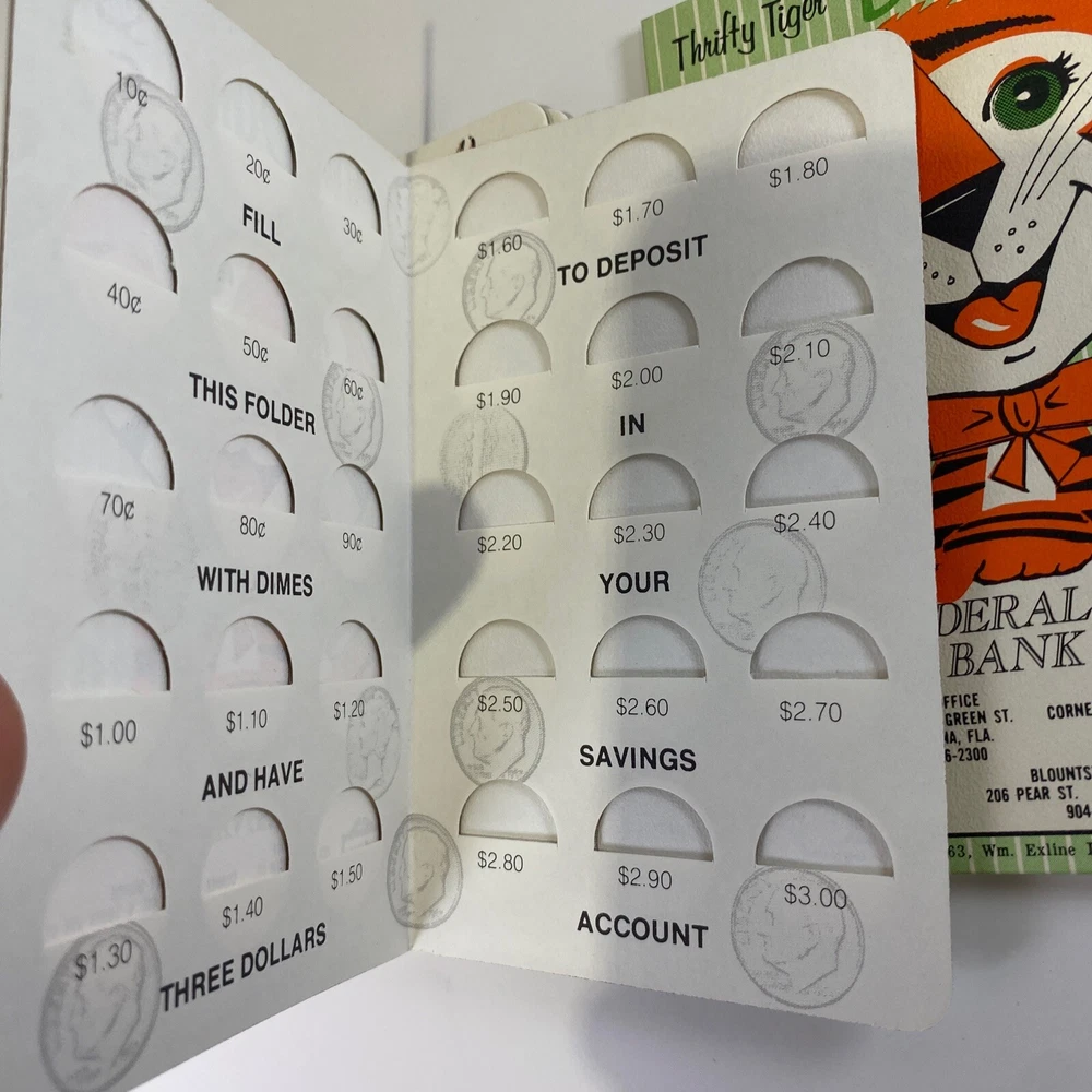 This vintage Thrifty Tiger quarter saver coin book from 1964 is a must-have for any collector of bank and insurance memorabilia. The book features a colorful orange design and includes a 1957 save a pocket full coin from Marianna, FL. It is a great addition to any historical collection and a unique piece of American history. The coin book is unmodified and not signed, making it a rare find for collectors who value authenticity. 1964 Thrifty Tiger Quarter Saver Coin Book 1957 Save A Pocket Full VTG Banking Fast Shipping