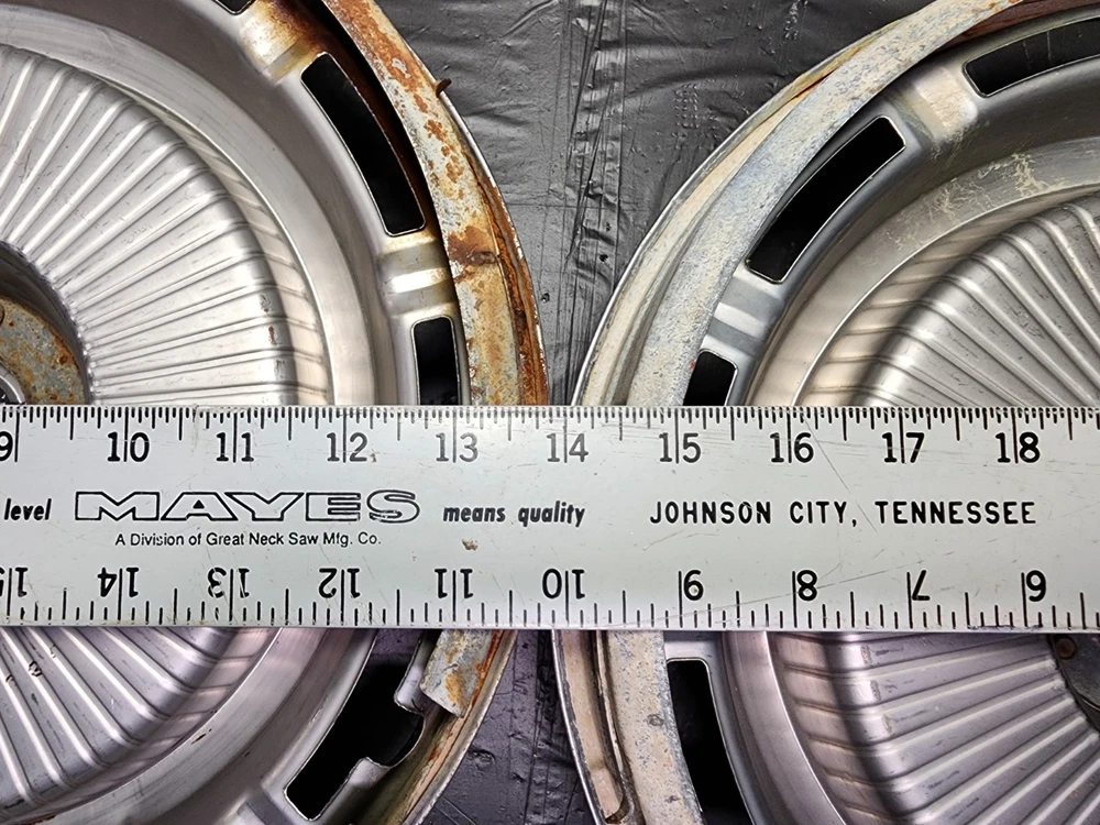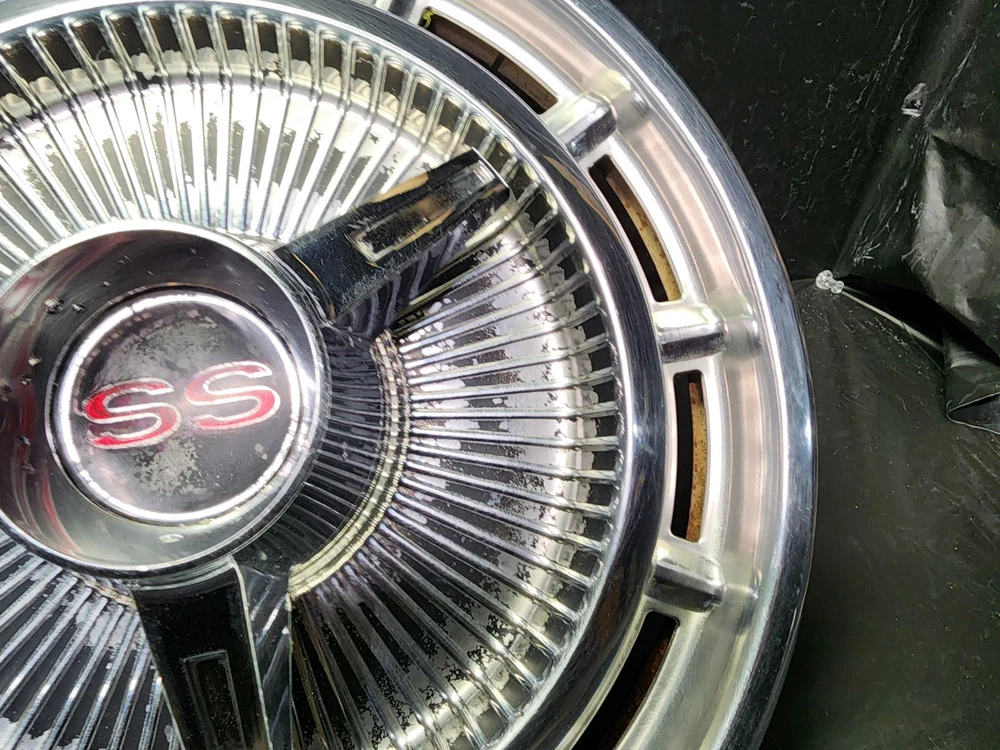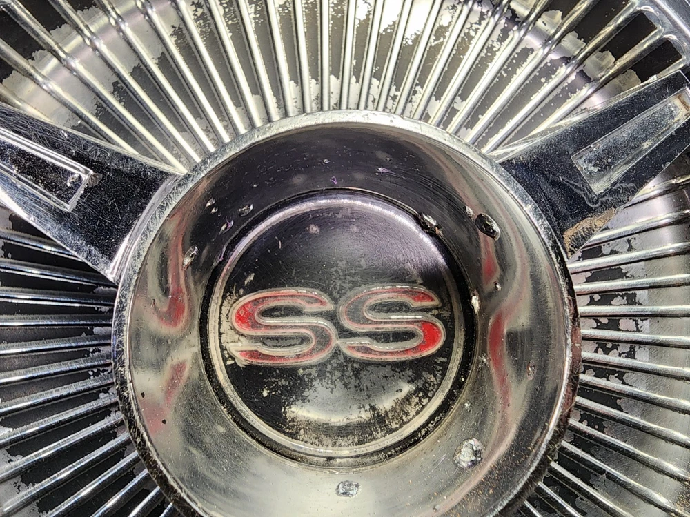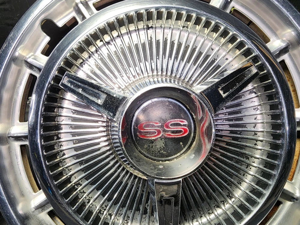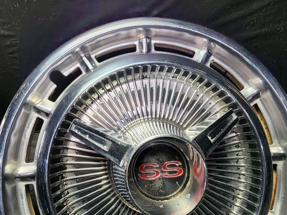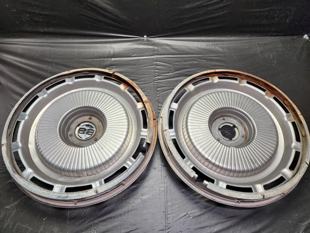 Vintage 40s 50s 60s 70s hub caps. nice pair of 60s Chevy Impala Original OEM Factory OE hubcaps wheel covers center caps. in good condition considering their age and being used. These are Used hubcaps off of old classic cars that were driven on the road and used, so please see photos for complete condition as they are not all perfect. Most have some fading, dings, scuffing, mineral staining, etc could use a good polishing to bring em back to full shine, but otherwise in beautiful condition. Check out more of my ebay page as we are going through and listing a ton of classic / vintage hubcaps from the the 20's 30's 40's 50's 60's 70's 80's 90's 00's and up. all different makes and models such as Ford Chevy Chevrolet GM Cadillac GMC camero nova Chevelle Nomad Bel Air Mercury Corvette Mustang Oldsmobile Pontiac Lincoln Dodge Plymouth Buick Chrysler Mopar Fairlane Volkswagen Cheiftain Challanger Charger 1500 4x4 muscle car hot rod rat rod Cars and Trucks 15in 14in 16in and so much more from full sets to sets of 2 and singles, you name it check us out!