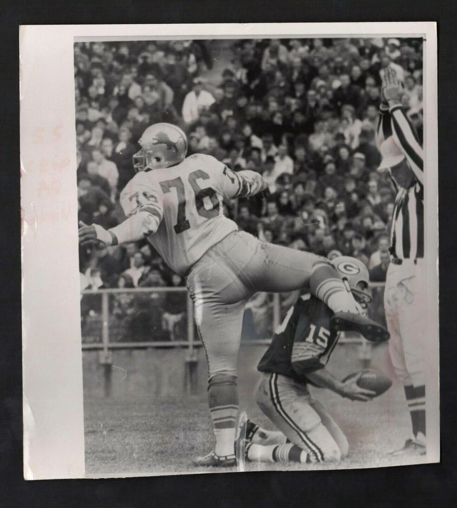 Note: Please study the images carefully to determine the condition of this vintage photograph, as it may not be in perfect condition. It may contain wrinkles, cracks, and possibly even tears due to its age and how it was handled before it got to us. A scanner may interpret colors and contrast differently than human eyes will, so it is possible that the actual photograph may be slightly darker or lighter in person. This vintage photograph is offered for sale as a collectible item and conveys no transfer of copyright. 8x 8 1/2 1965 Press Photo Bart Starr Green Bay Packers vs Roger Brown Detroit Lions $4.99 SHIPPING NO MATTER HOW MANY PHOTOS BOUGHT PER INVOICE