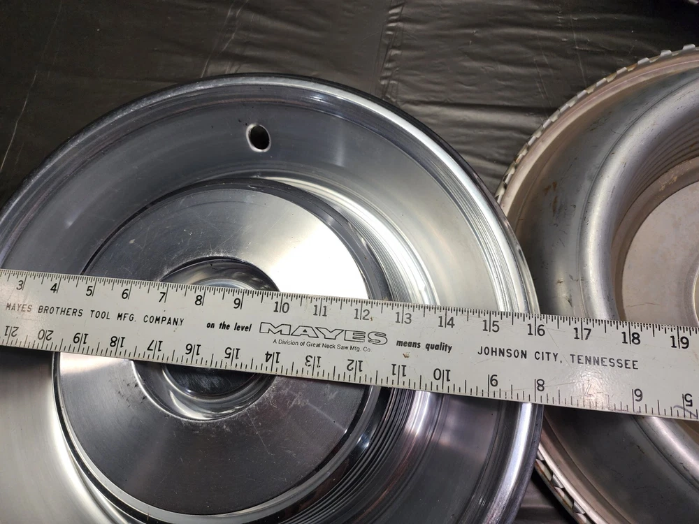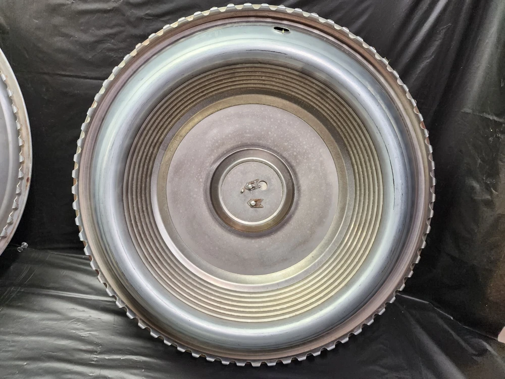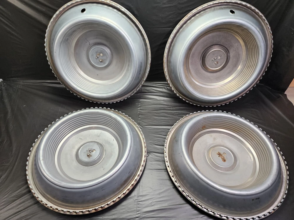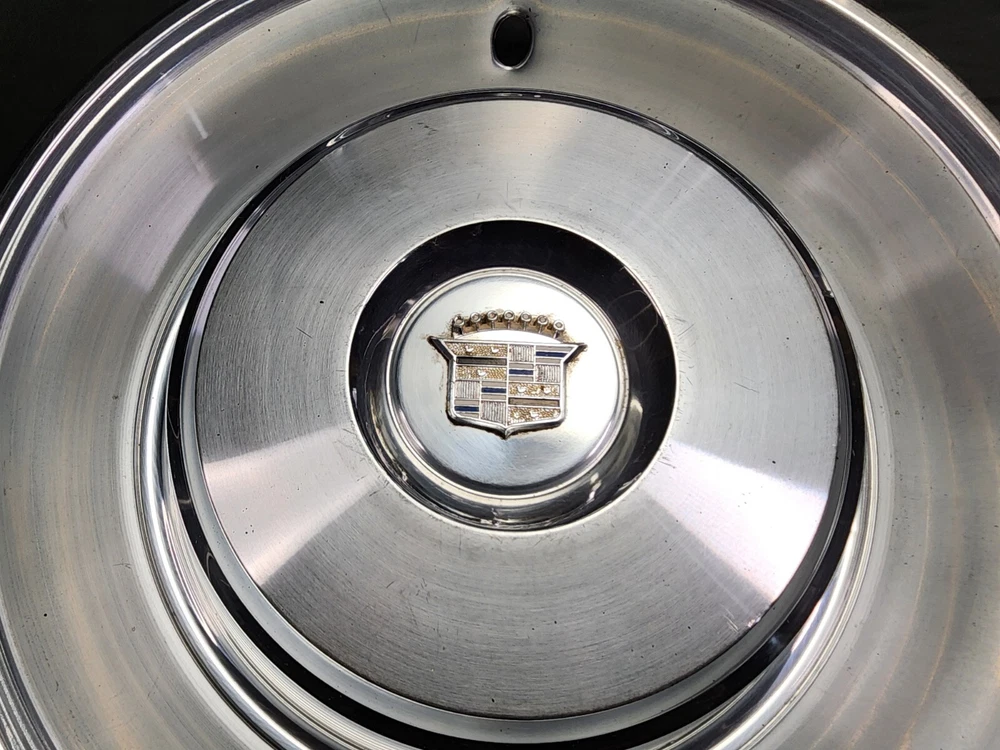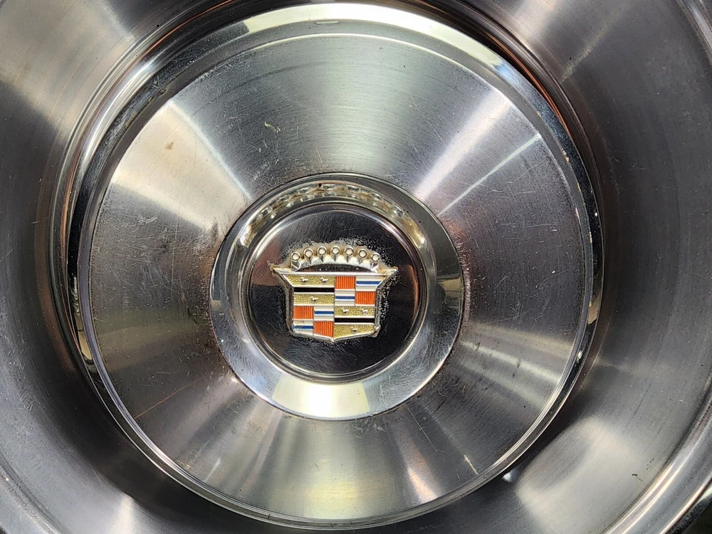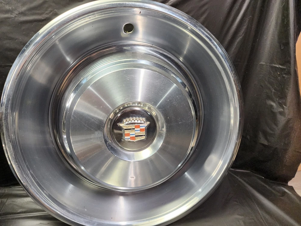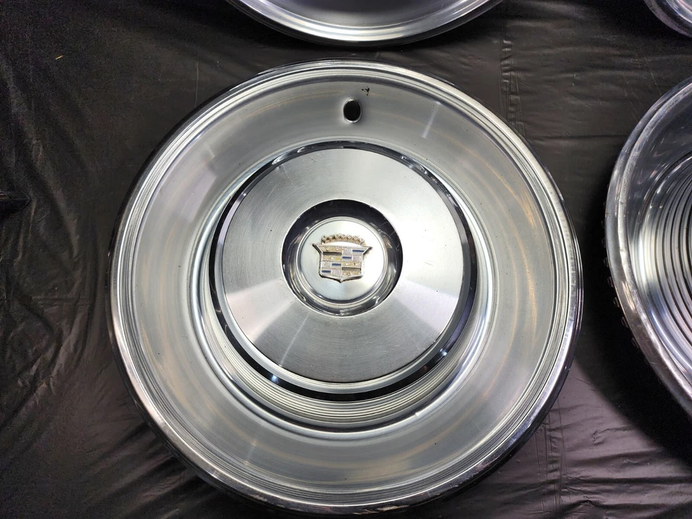 really clean set of 4 60s cadillac sombrero style hubcaps/ wheel covers for 15 in rims. in great condition regarding their age and slight use. minor fading and scuffing, could use a good polishing to bring em back to full shine, but otherwise in beautiful condition. These are Used hubcaps off of old classic cars that were driven on the road, so please see photos for complete condition as they are not all perfect. Check out more of my ebay page as we are going through and listing a ton of classic / vintage hubcaps from the the 20's 30's 40's 50's 60's 70's 80's 90's 00's and up. all different makes and models such as Ford Chevy Chevrolet GM Cadillac GMC camero nova Chevelle Nomad Bel Air Mercury Corvette Mustang Oldsmobile Pontiac Lincoln Dodge Plymouth Buick Chrysler Mopar Fairlane Volkswagen Cheiftain Challanger Charger 1500 4x4 muscle car hot rod rat rod Cars and Trucks 15in 14in 16in and so much more from full sets to sets of 2 and singles, you name it check us out!