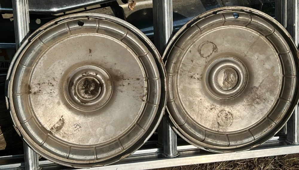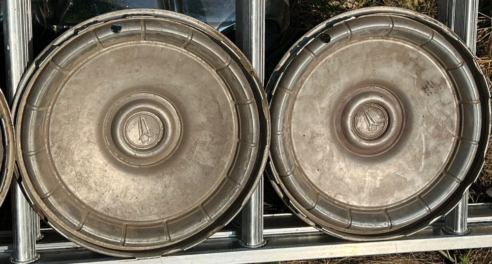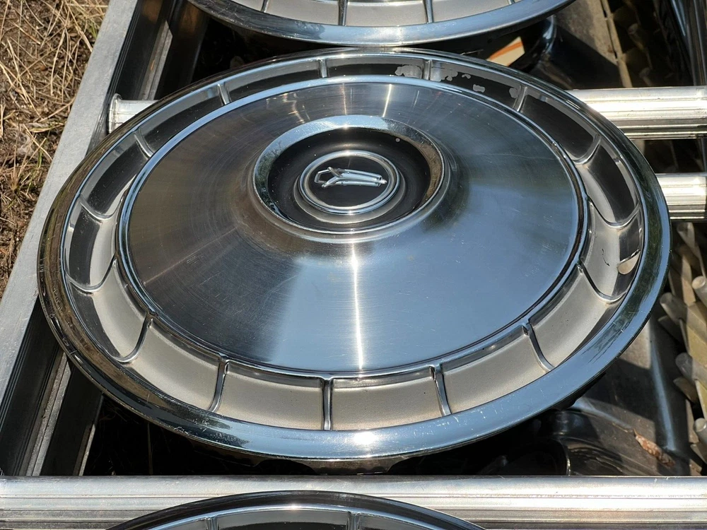 SET OF FOUR MOPAR HUBCAPS. NICE USED CONDITION. MINOR BLEMISHES. USE CLOSEUP VIEWER TO BEST DETERMINE CONDITION